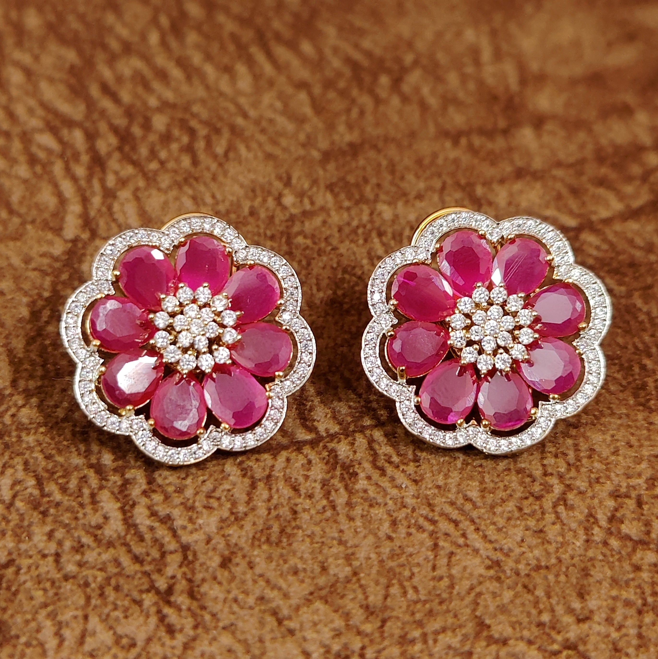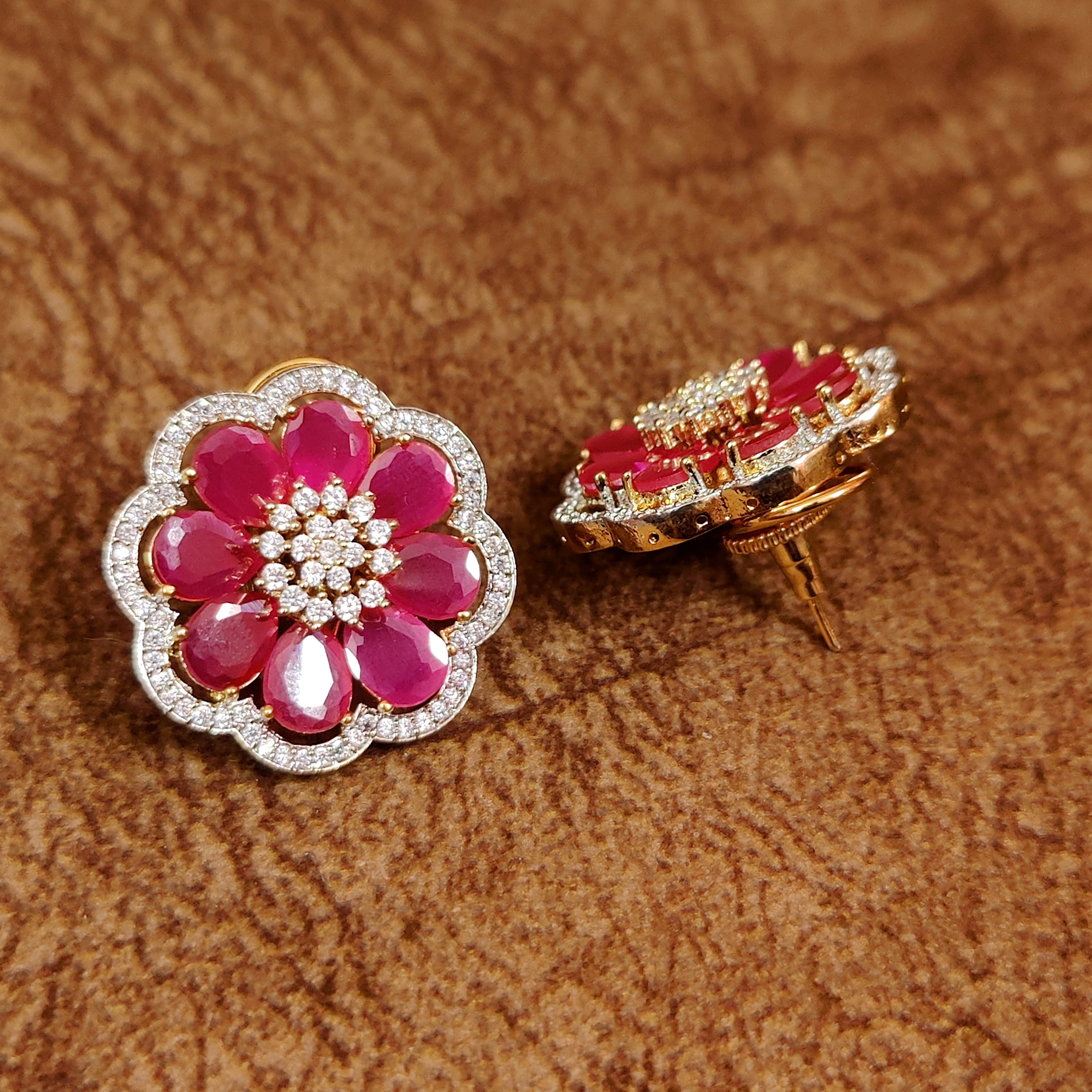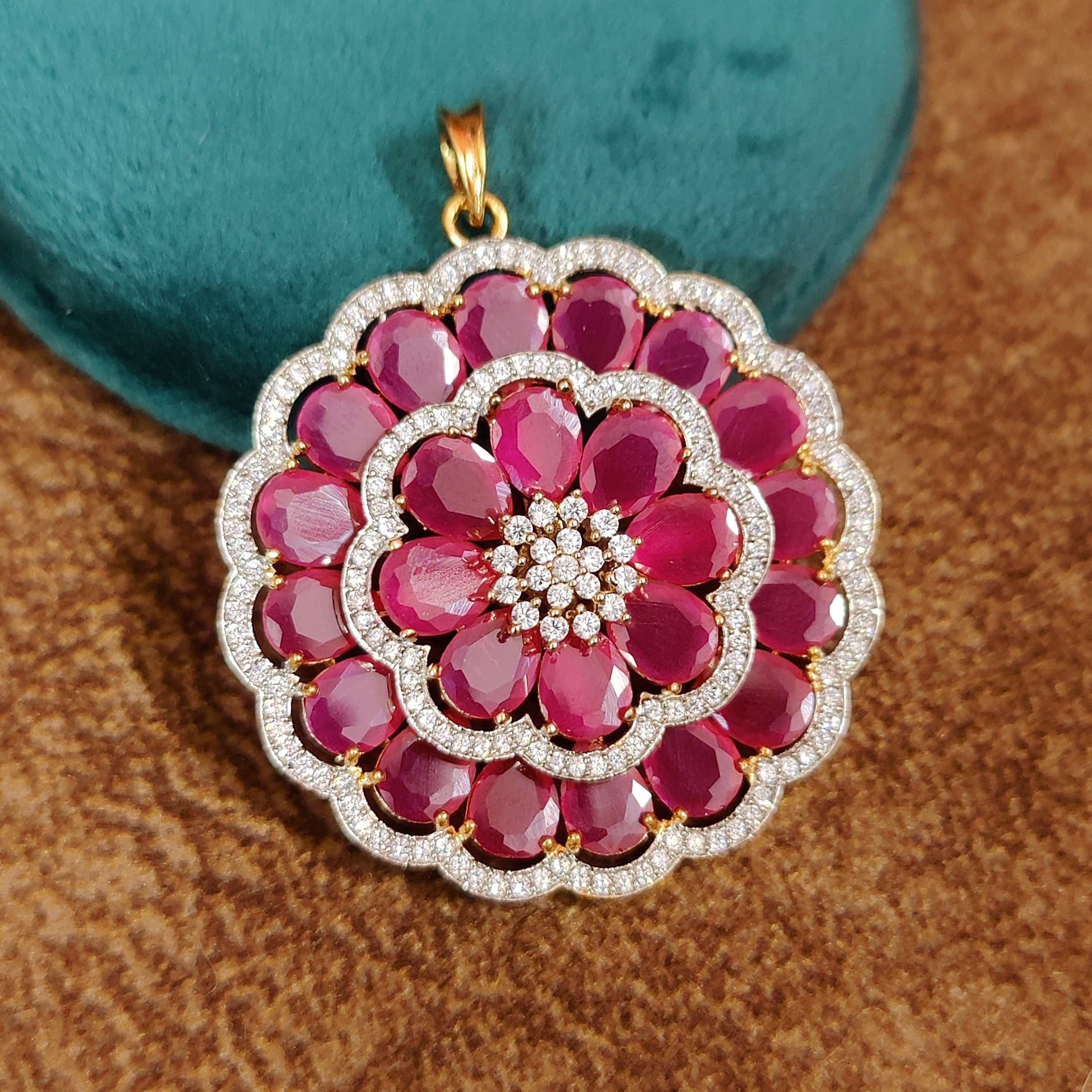 RUBY COLOUR FLORAL CZ PENDANT SET