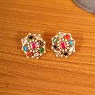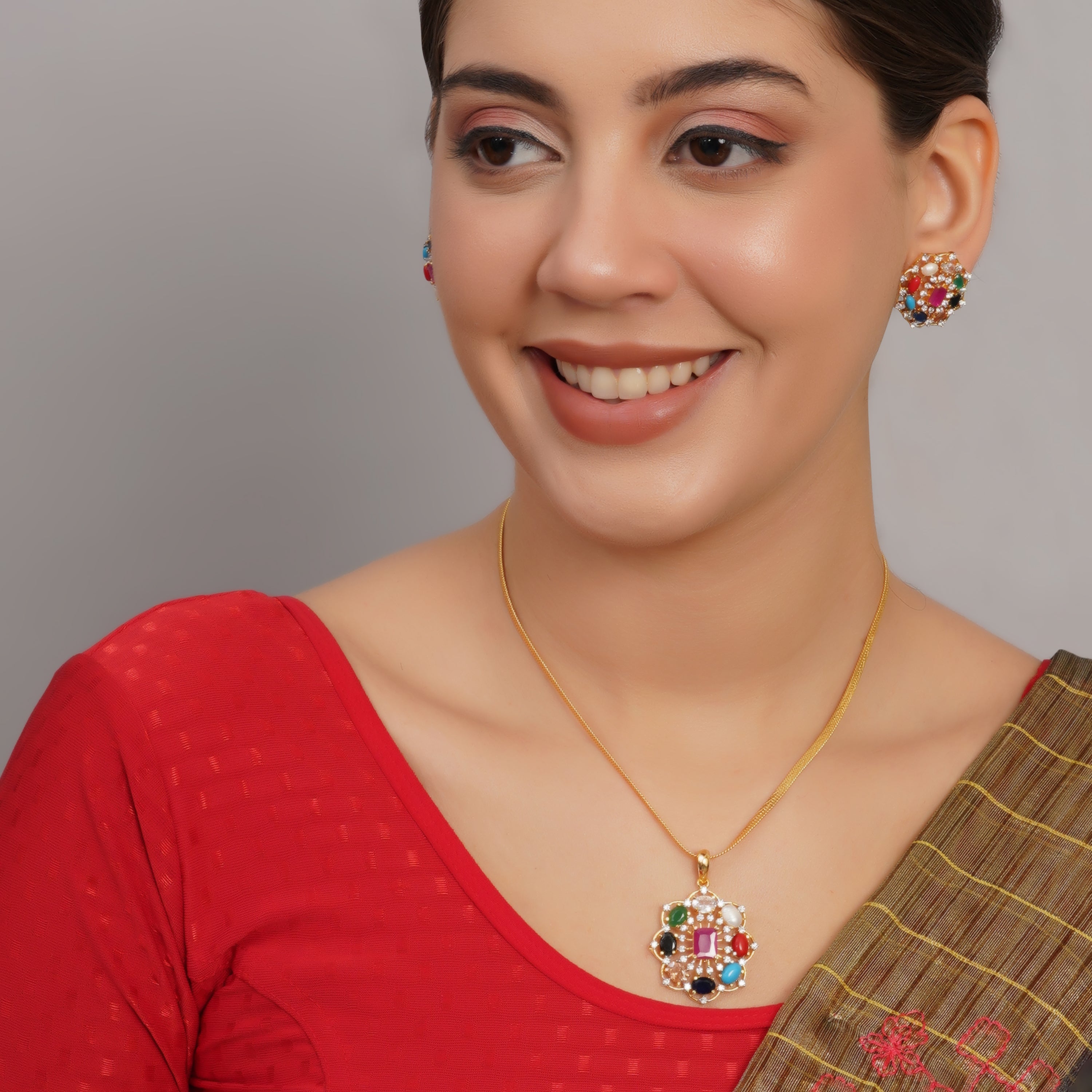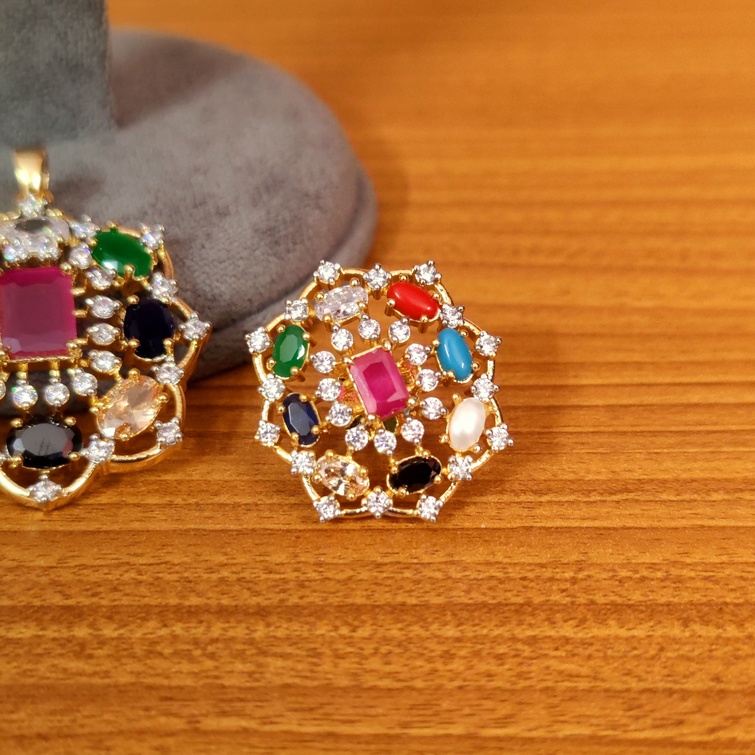 NAVRATAN LOOK CZ STUDDED GOLD PLATED PENDANT SET