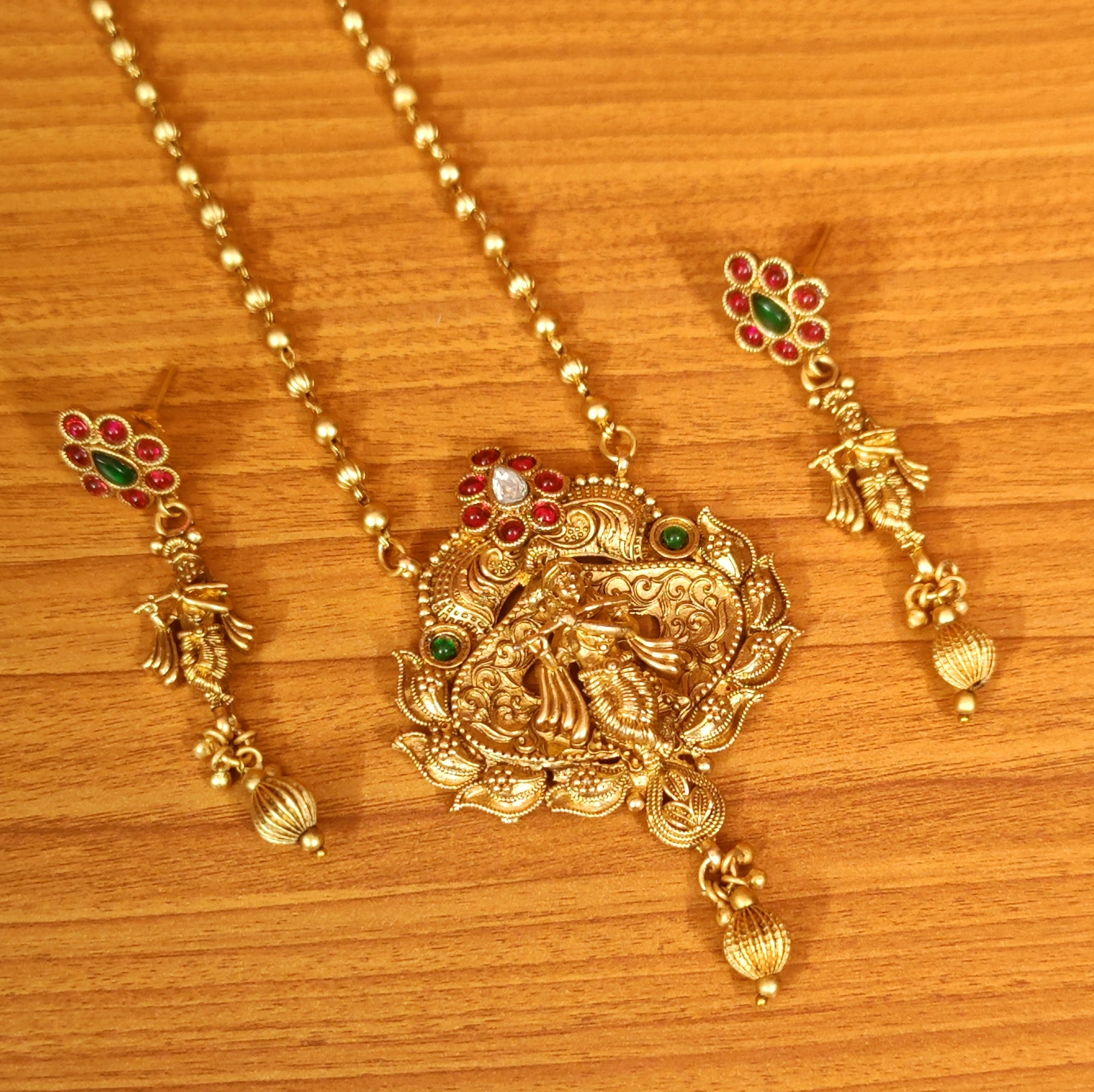ANTIQUE MATT GOLD LOOK LORD KRISHNA PENDANT SET