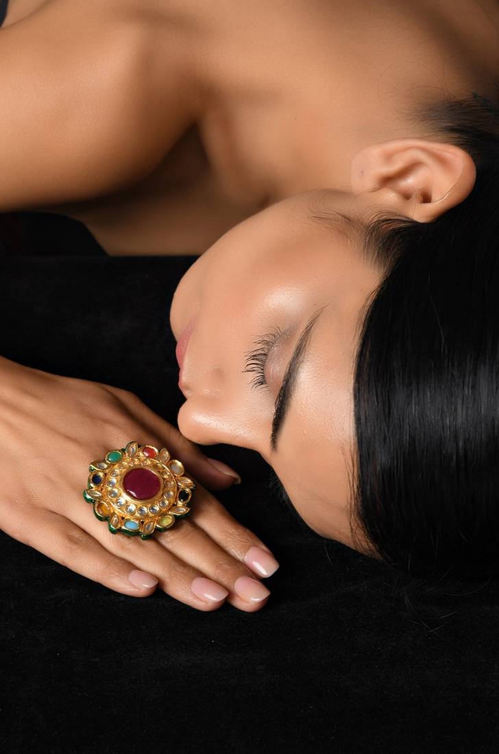 NAVRATAN KUNDAN MEENAKARI COCKTAIL RING