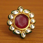 RUBY COLOUR ONYX KUNDAN MEENAKARI ADJUSTABLE RING