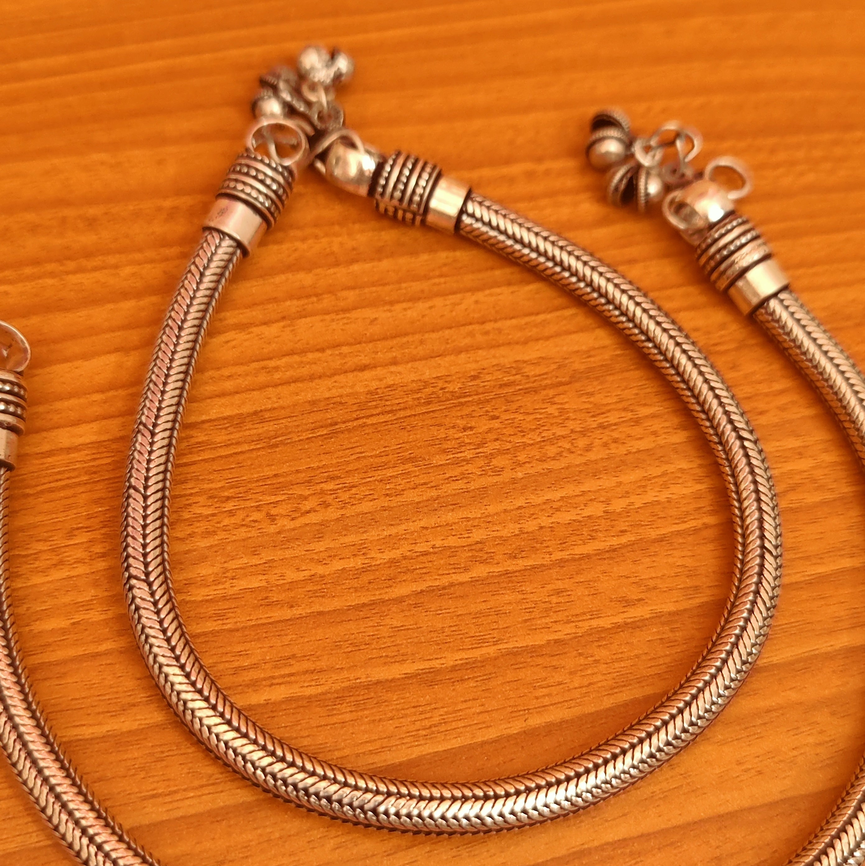 SILVER LOOK ALIKE BROAD ANTIQUE ANKLETS