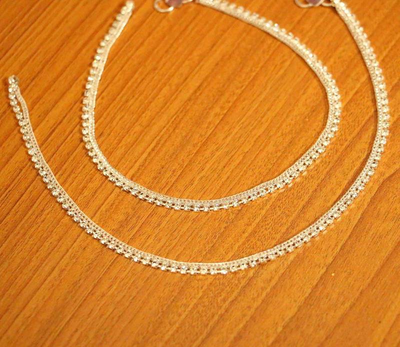 This beautiful anklets is handcrafted in mettal alloy with imitation and silver plated work of very fine quality . This anklets is coated with 18 kt white gold polish which give them a unique look . An absolutely stunning piece to own and are very light in weight.