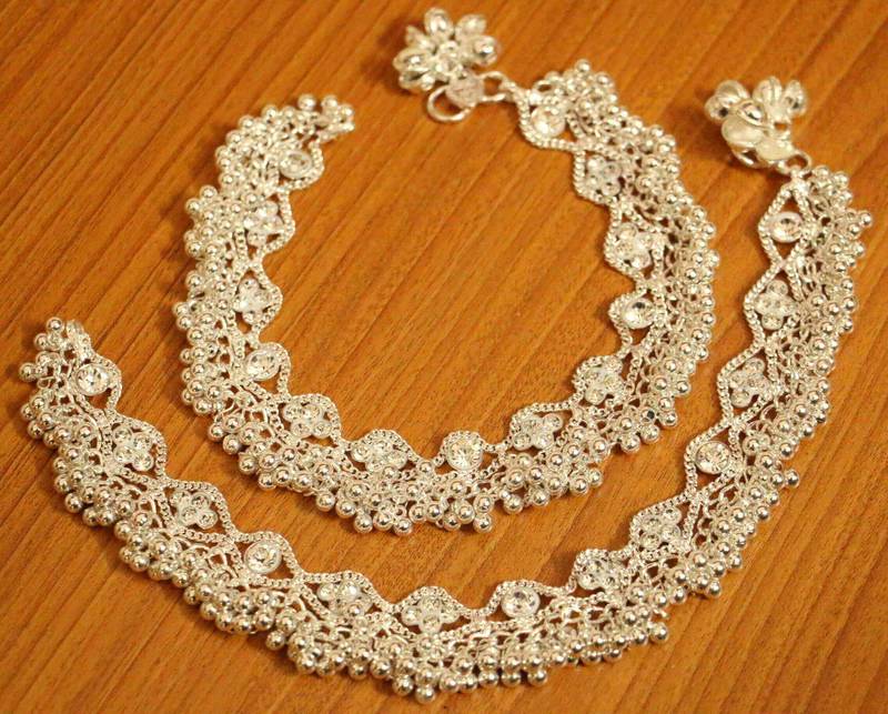 This beautiful anklets is handcrafted in mettal alloy with imitation zircon and silver plated work of very fine quality . This anklets is coated with 18 kt white gold polish which give them a unique look . An absolutely stunning piece to own and are very light in weight.