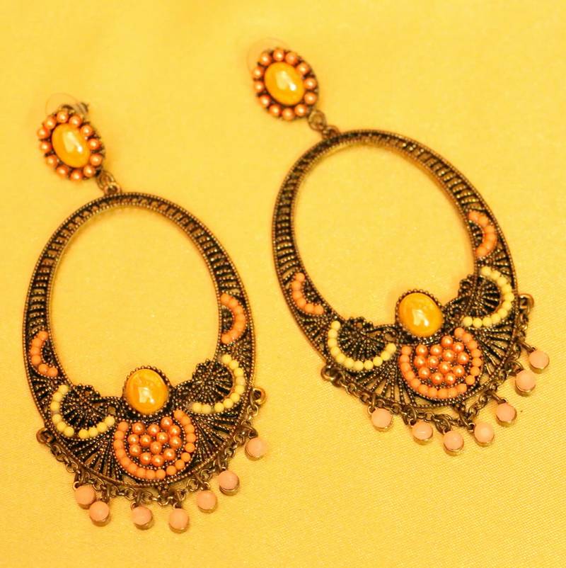 These beautiful earrings are handcrafted in brass alloy with imitation crystal work of very fine quality. These earrings are coated with antique gold polish which give them a unique look . An absolutely stunning piece to own and are very light in weight.