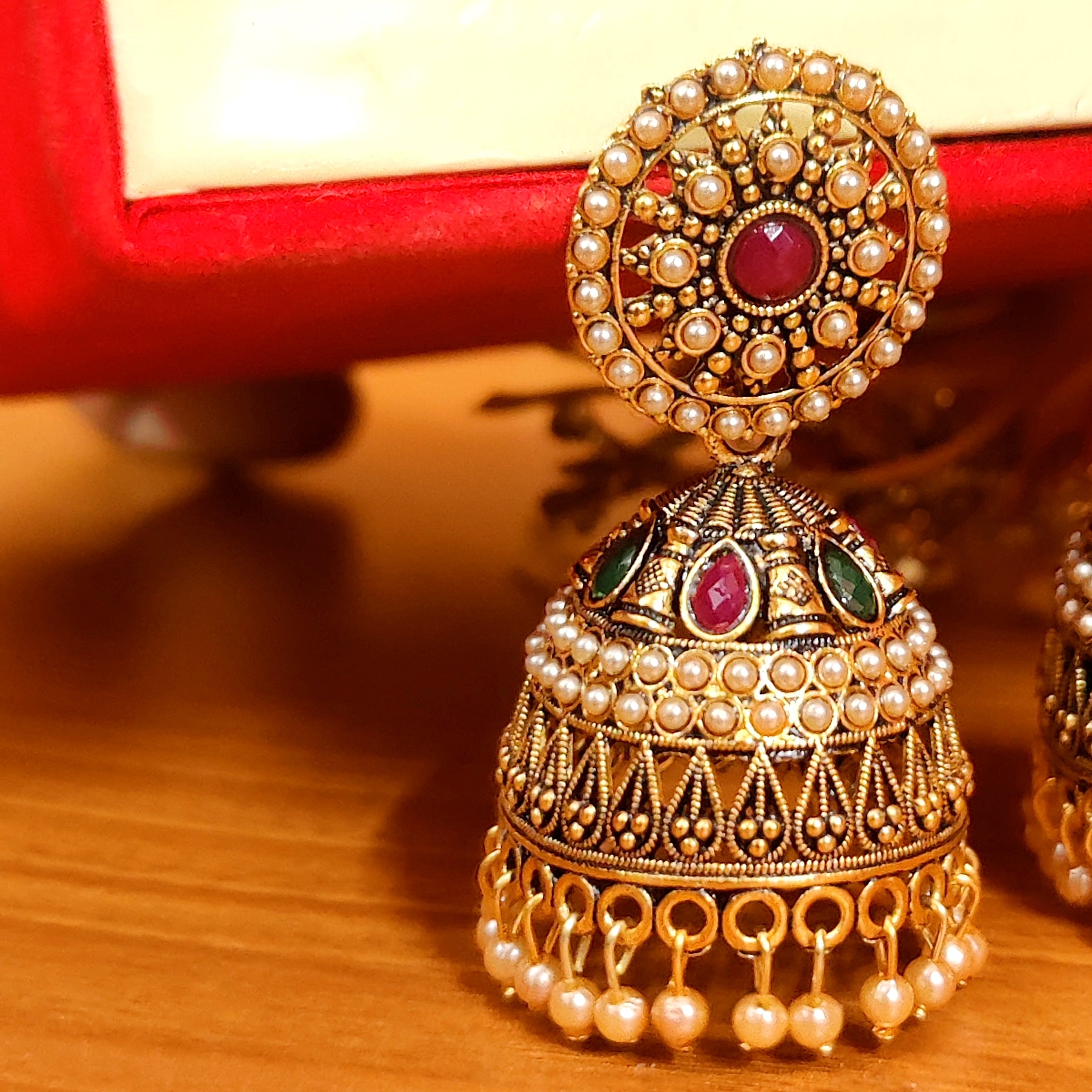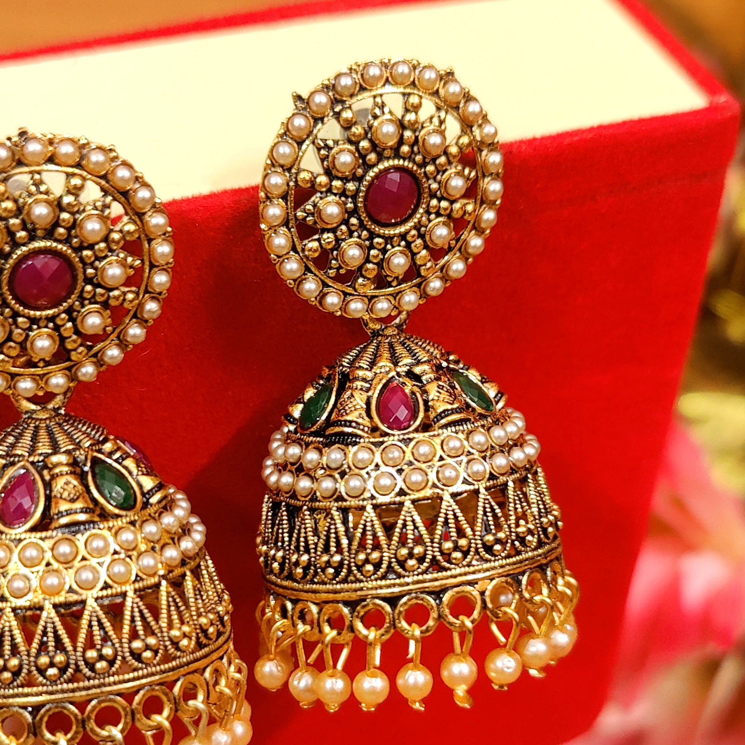 ANTIQUE OXIDISED GOLD LOOK MULTICOLOUR JHUMKA'S