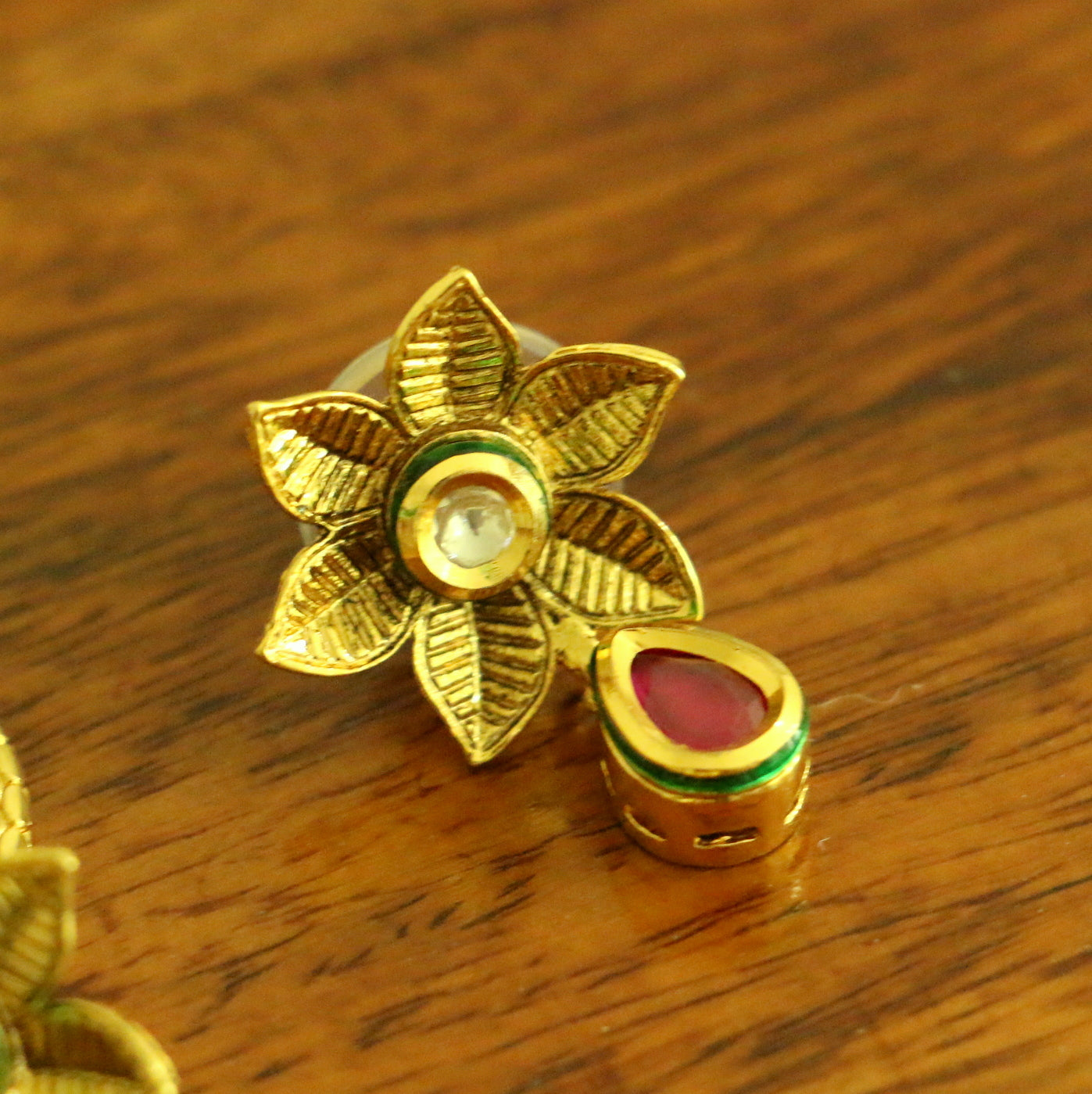 This kundan meenakari peacock pendant set is handcrafted in silver alloy with imitation ruby colour stone & kundan polki stones of very fine quality . This Pendant set is coated with 18 kt gold rhodium plating and comes with a gold plated chain which gives it a real gold look . The design itself is very unique and a perfect party wear.