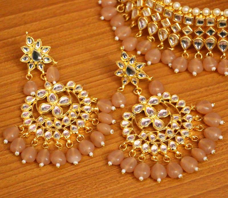 This Kundan Polki Necklace Set Is Handcrafted In Silver Alloy With Imitation Beige Colour Stones And Kundan Polki Stones Of Fine Quality , The Necklace Set Is Plated In 18kt Gold Plating And The Design Itself Is Perfect For Wedding Attires.