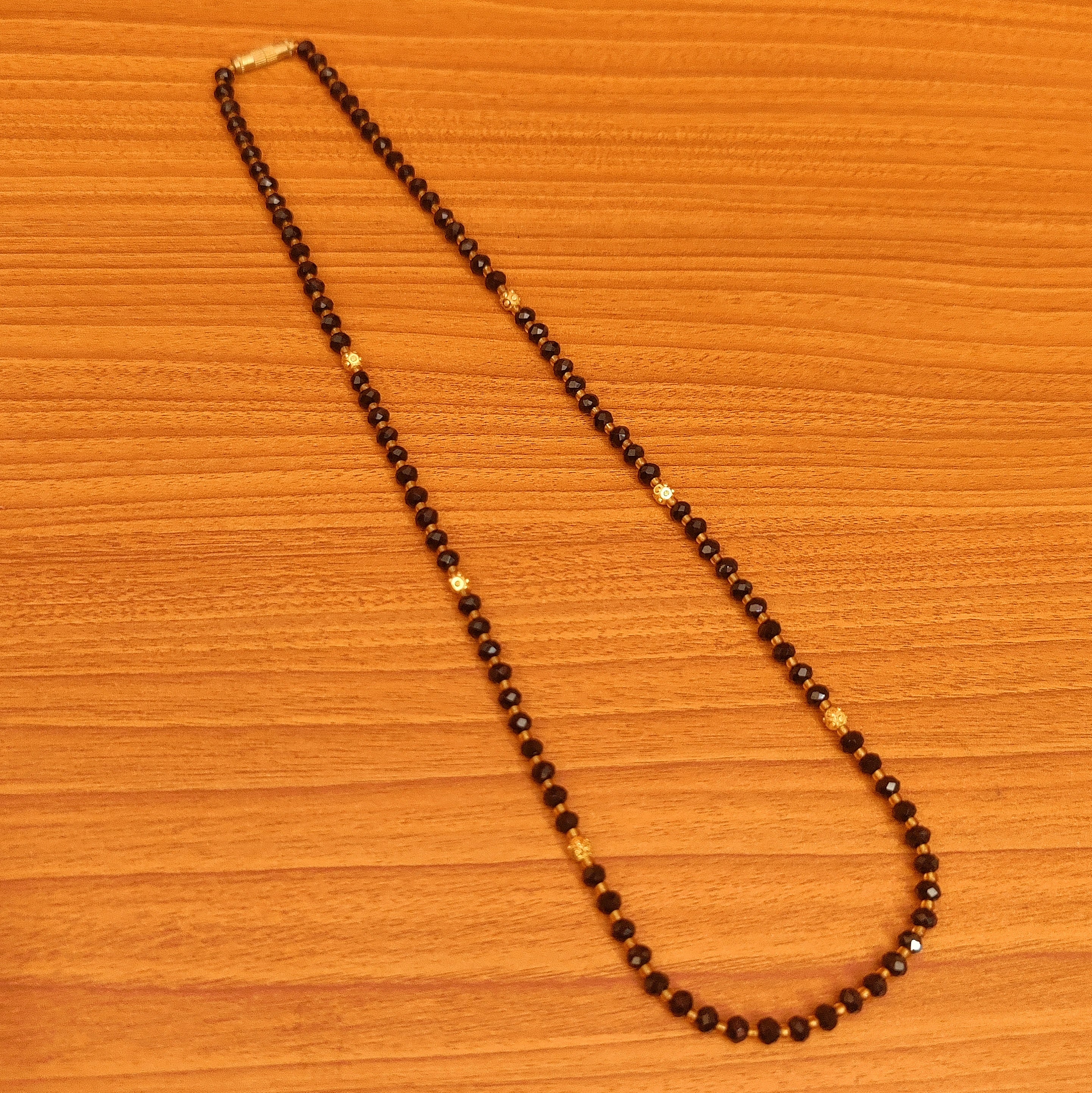 BLACK CRYSTAL GOLDEN BEAD SINGLE LINE NECKLACE