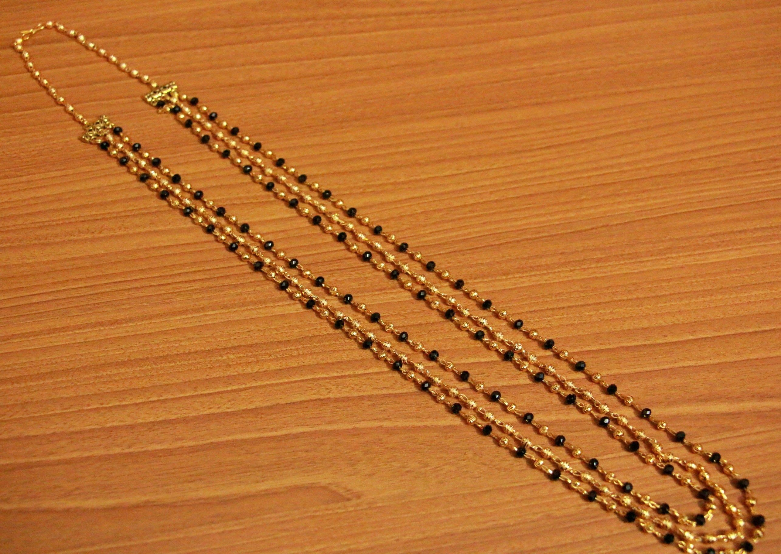 This ethnic necklace is handcarfted in copper alloy with imitation black & gold beads of very fine quality , the necklace is very light in weight and plated with gold rhodium