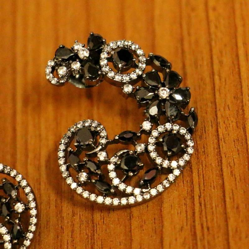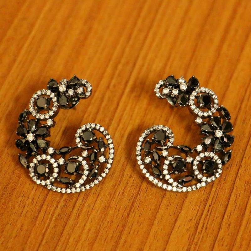 These diamond look danglers are handcrafted in silver alloy with imitation black onyx colour stones & cz stones of very fine quality. These earrings are plated in black rhodium plating which gives the design a real jewelry look .