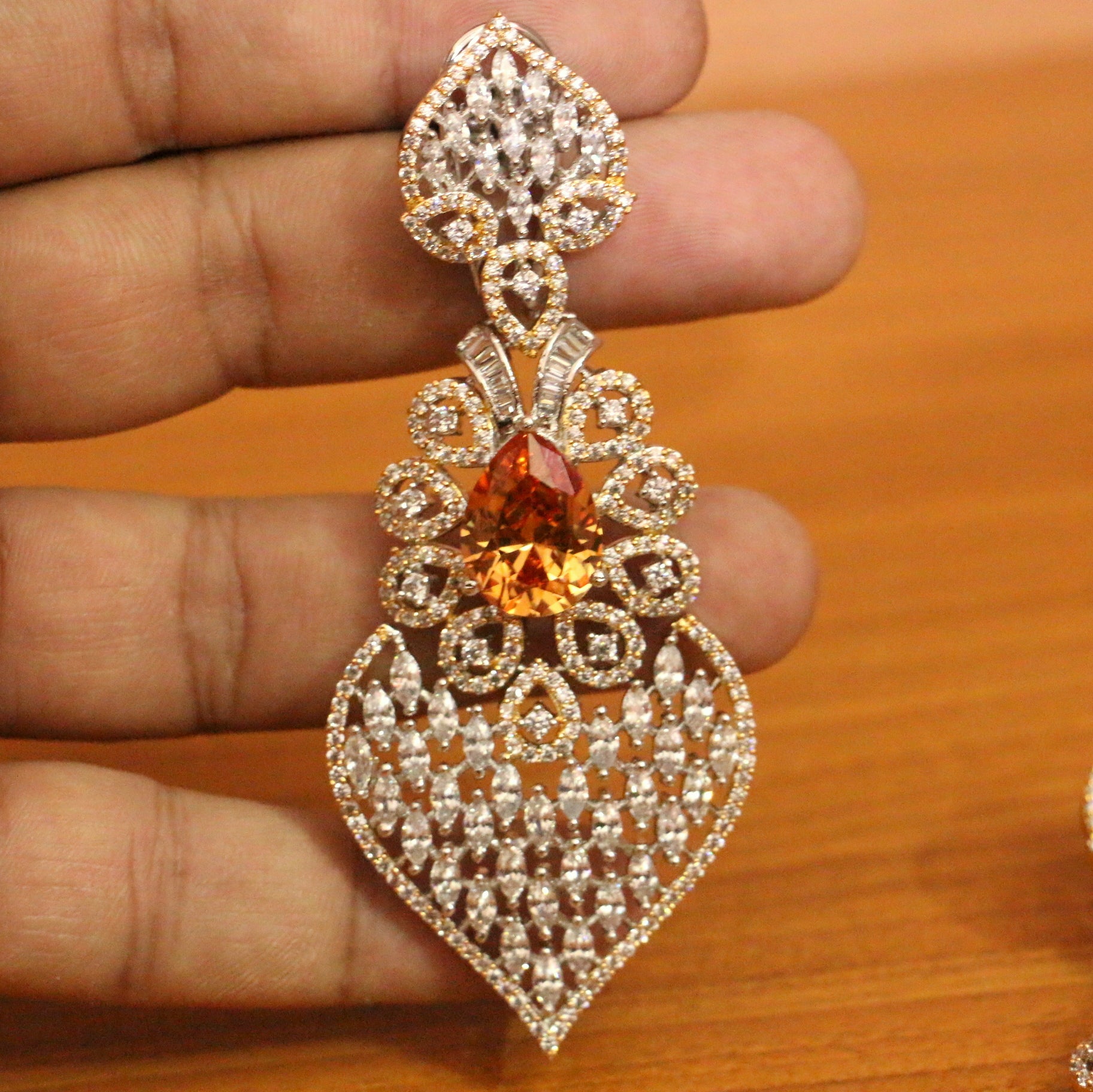 Champagne Stone & Cz Studded Diamond Look Danglers