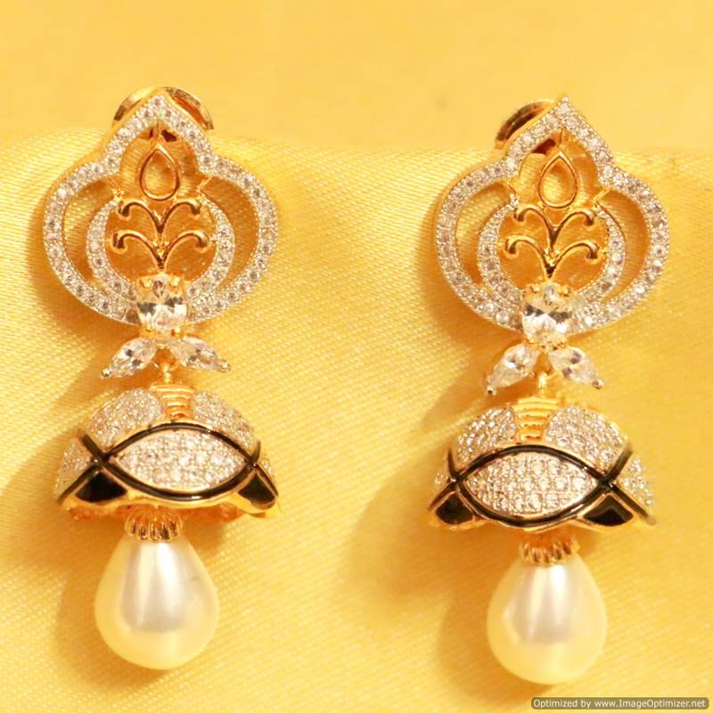 These beautiful Earrings are handcrafted in silver alloy with imitation zircon & semi precious onyx,american diamonds of very fine quality. These earrings are coated with 18 kt white gold polish which give them a unique look . An absolutely stunning piece to own and are very light in weight.