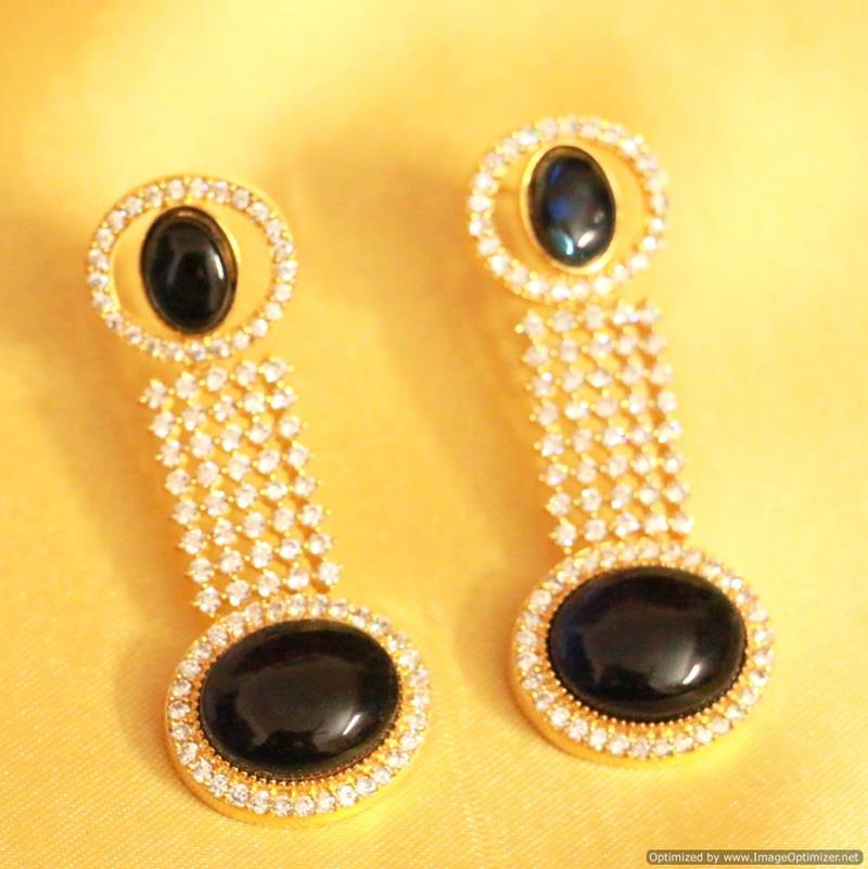 These beautiful Earrings are handcrafted in silver alloy with imitation sapphire & semi precious stone of zircon of very fine quality and semi precious stones . These earrings are coated with 18 kt gold polish which give them a unique look . An absolutely stunning piece to own and are very light in weight.