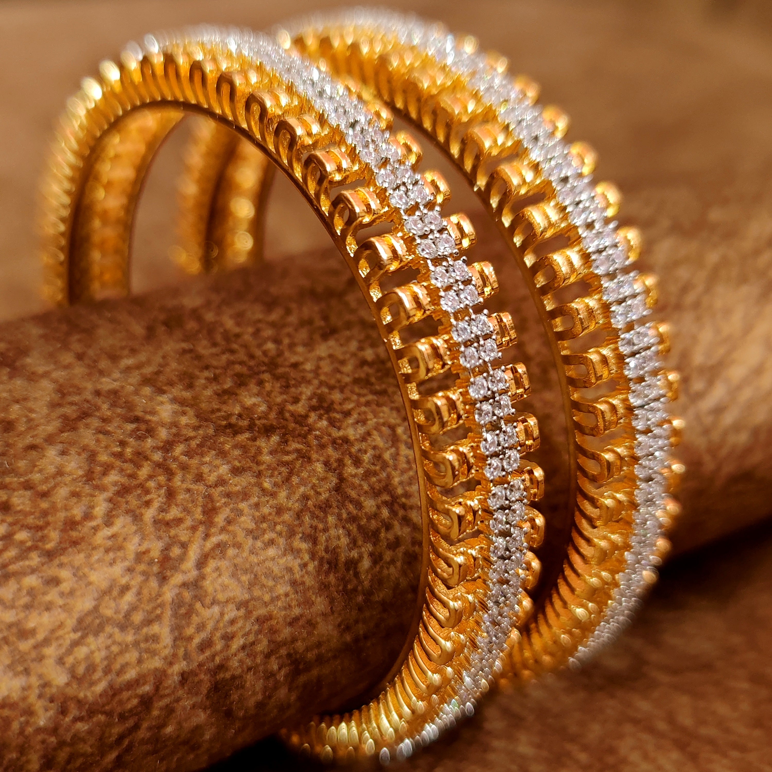 Elevate your jewelry collection with these Diamond Look Fine CZ Studded Bangles from Sanvi Jewels. Crafted with sparkling cubic zirconia that mimics the brilliance of real diamonds, these gold-plated bangles exude luxury and elegance. Perfect for weddings, parties, and special occasions, their lightweight design ensures comfortable wear all day. Add a touch of sophistication to your style with these exquisite CZ studded bangles.