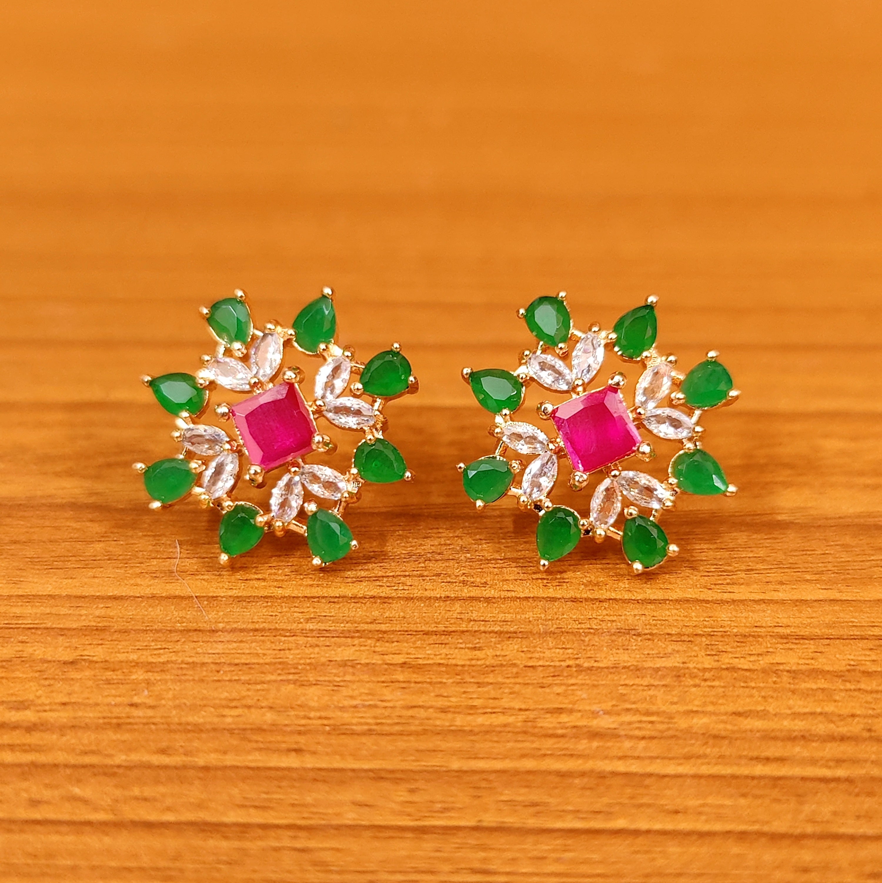DIAMOND LOOK GOLD PLATED CZ STUDDED EARRINGS