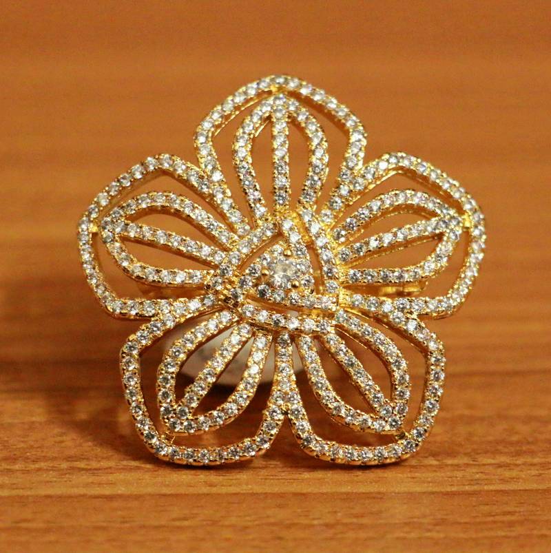 This Diamond Look Ring Is Handcarfted In Silver Alloy With Imitation American Diamond Of Very Fine Quality , The Ring Is Very Light In Weight And Plated With Gold Rhodium To Give It A Real Diamond Look.