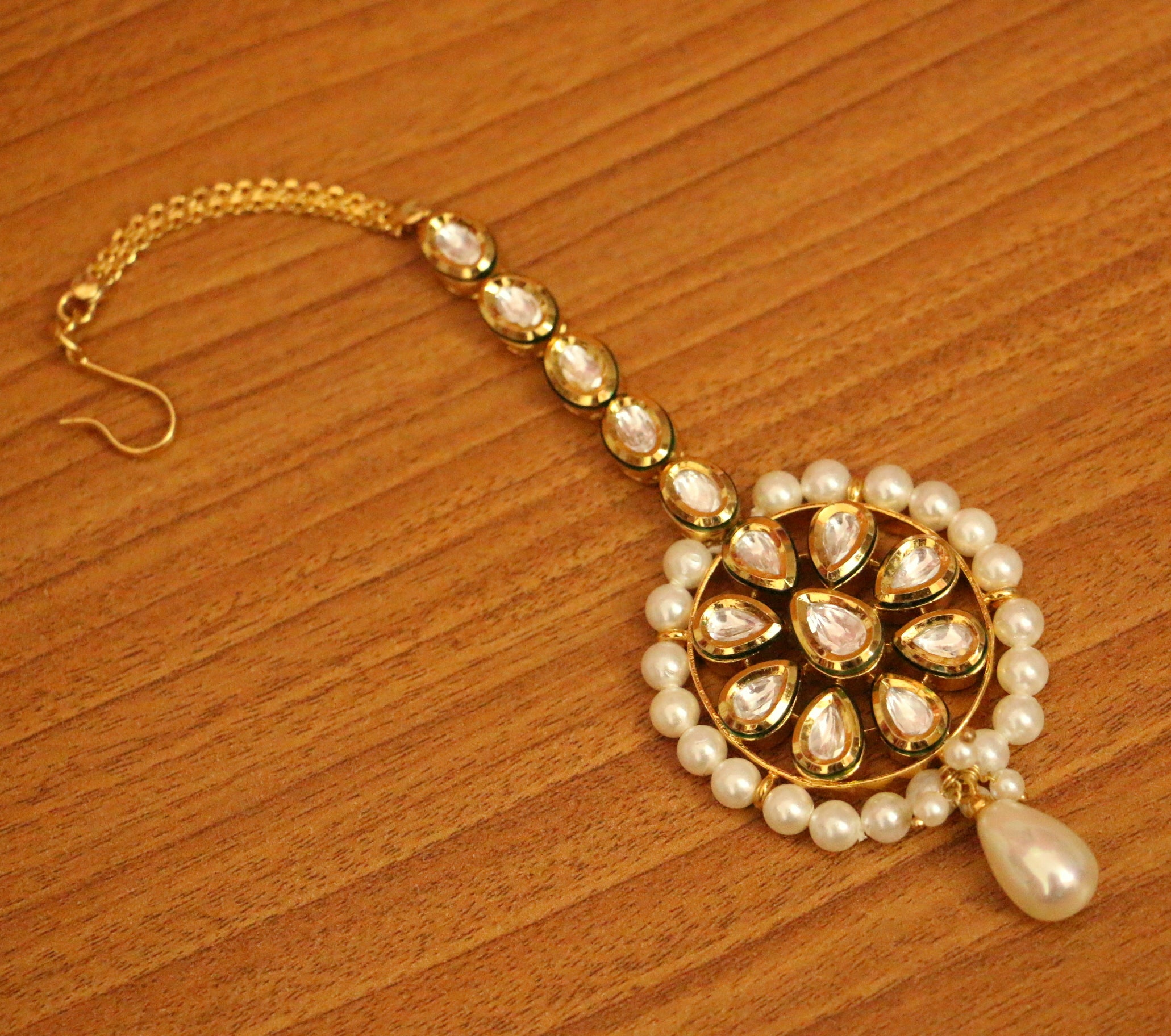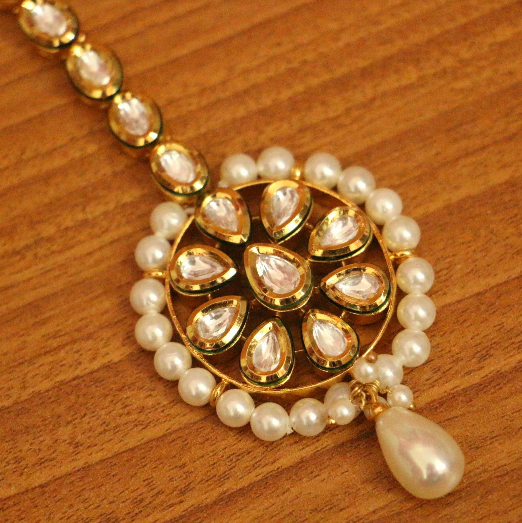 Pearl Kundan Meenakari Wedding Maang Tikka