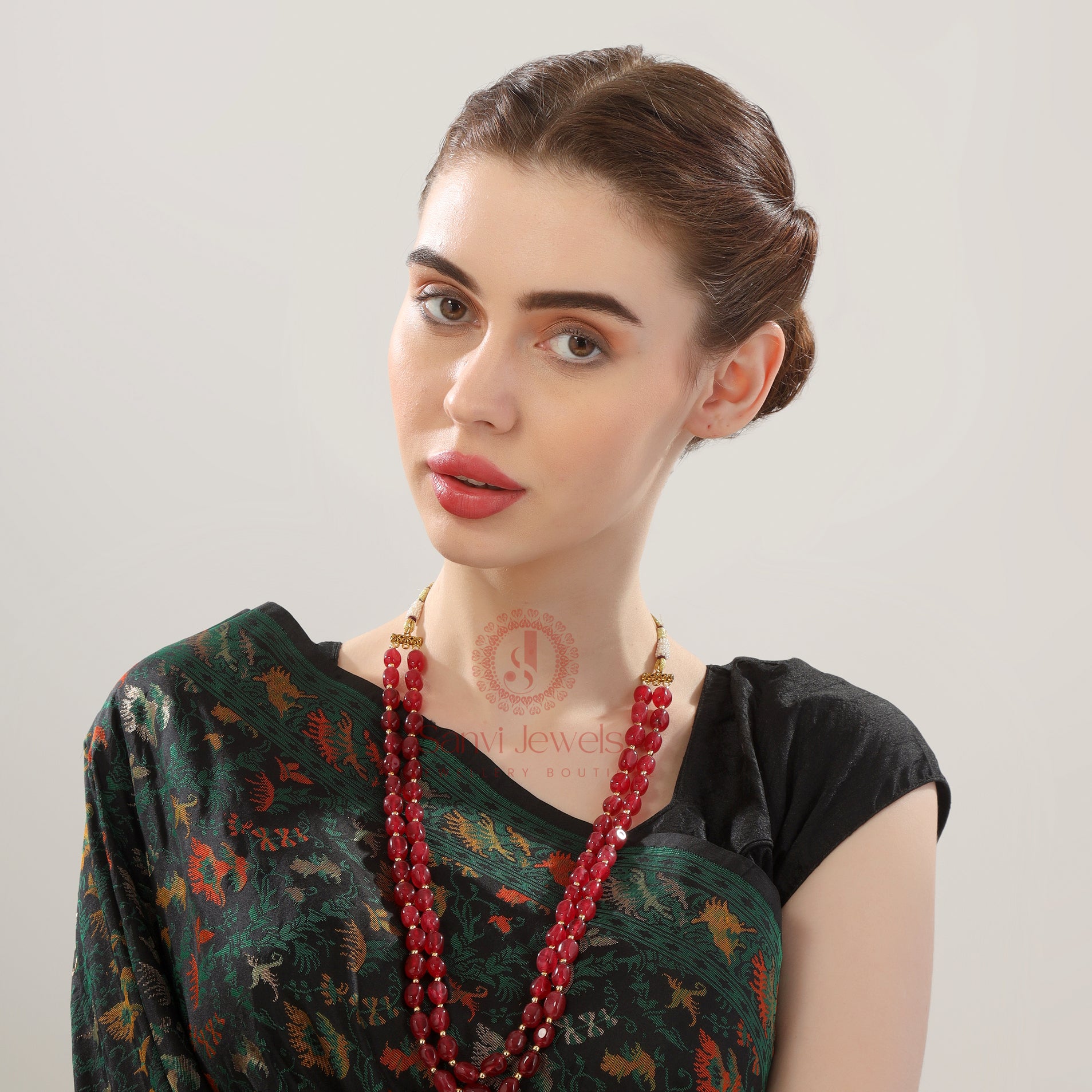 SEMI PRECIOUS RUBY LOOK TWO LINE NECKLACE