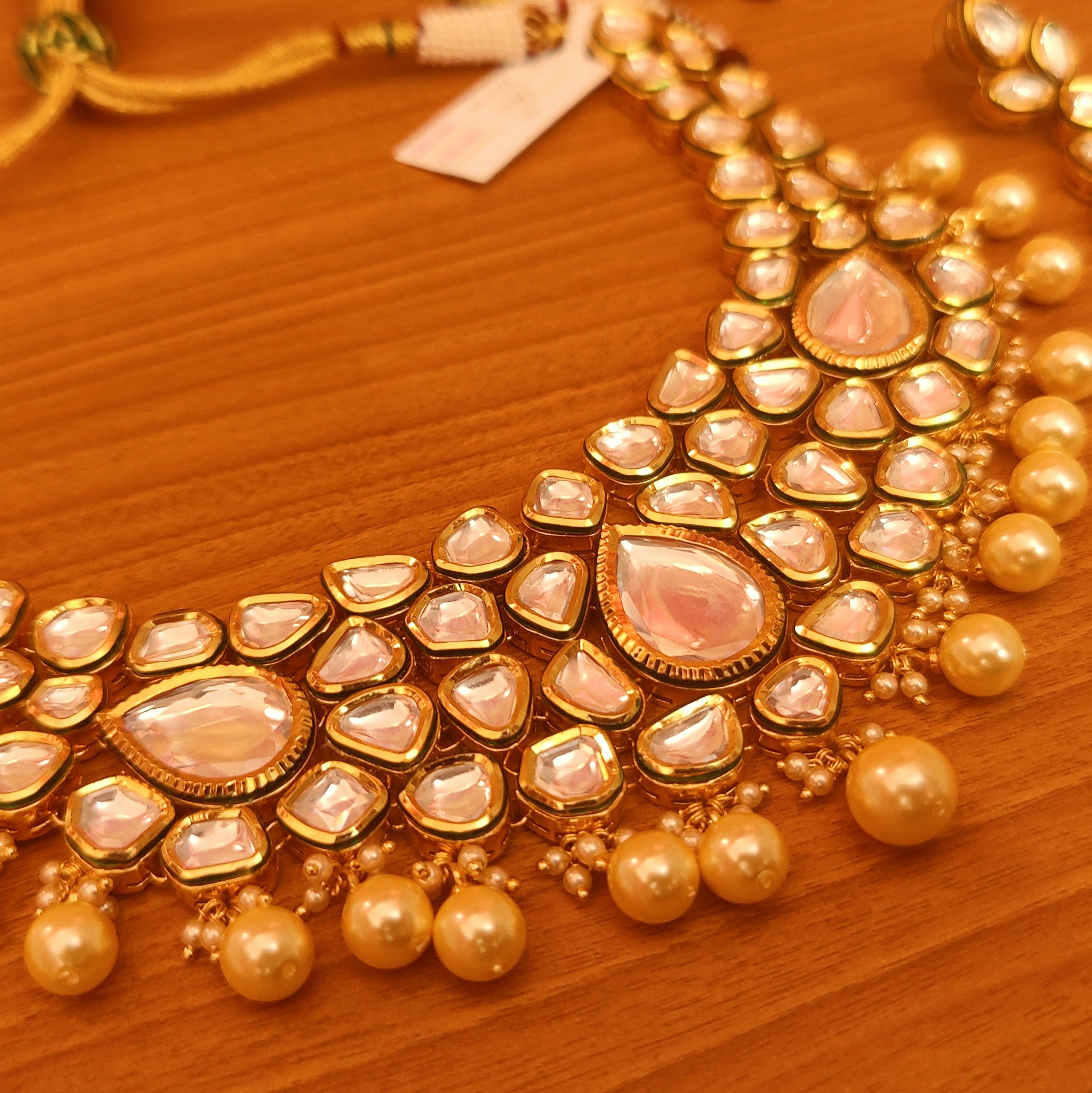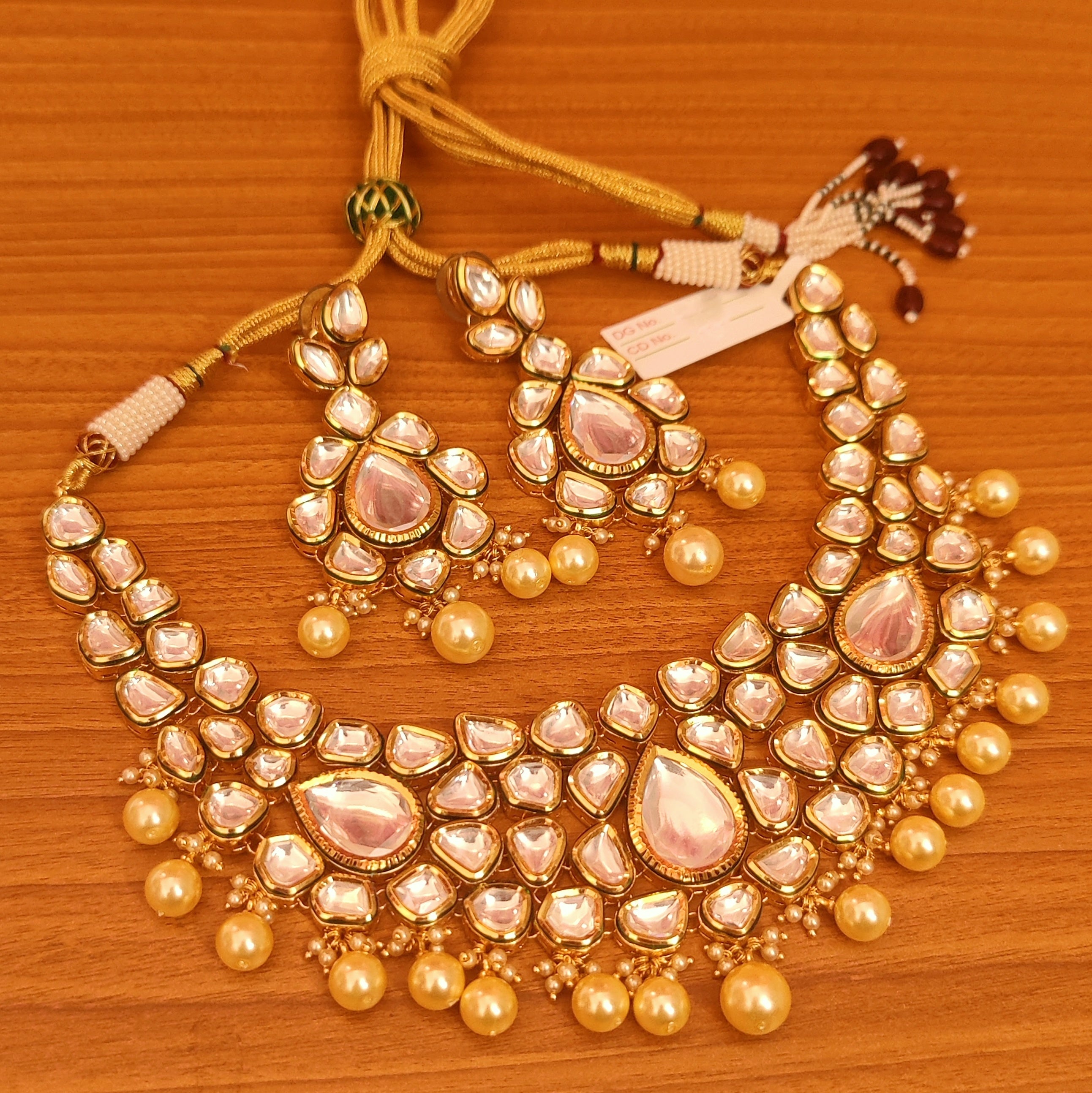 REAL KUNDAN POLKI LOOK UNCUT STONE MEENAKARI NECKLACE SET
