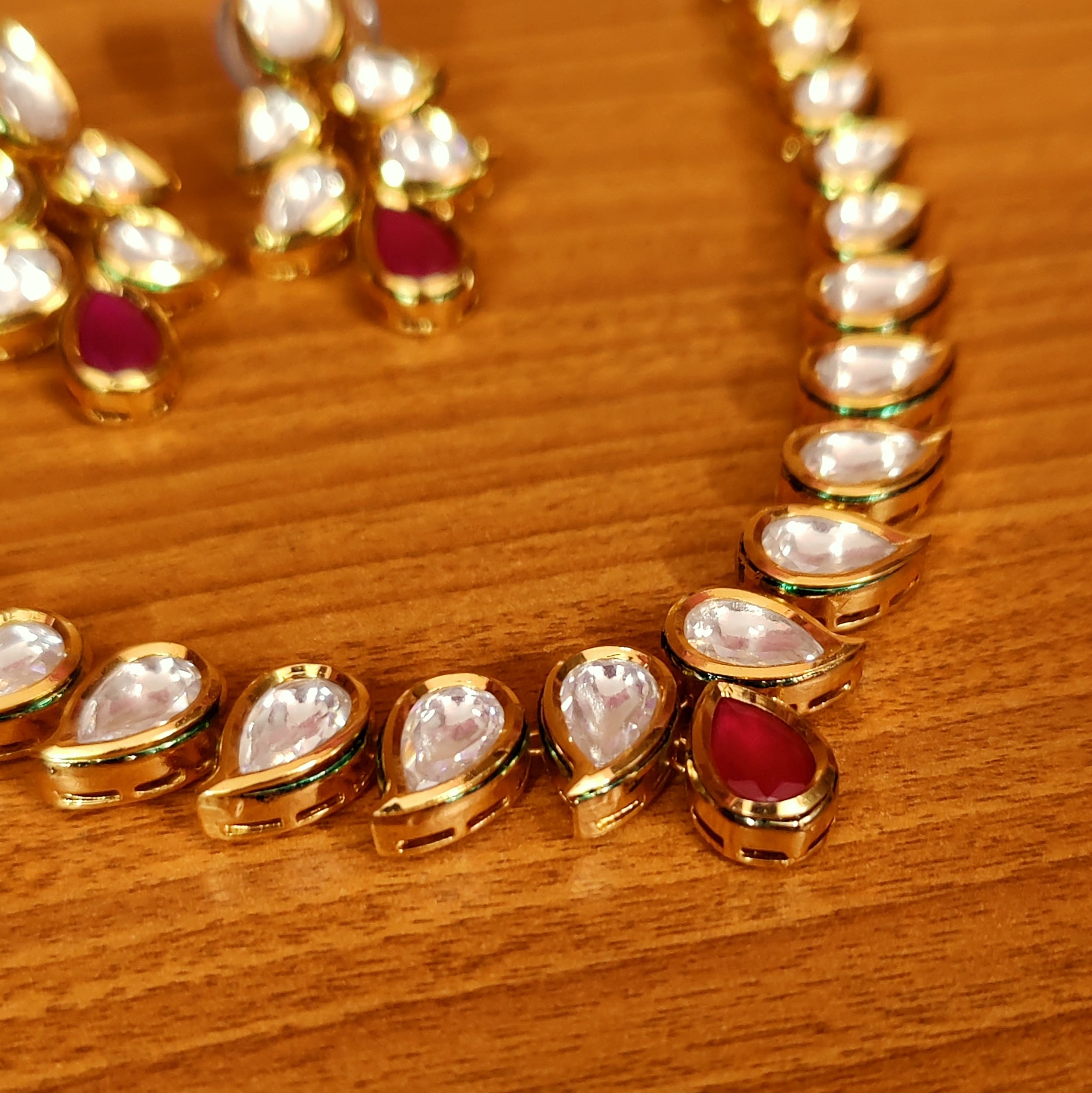 RUBY COLOUR KUNDAN POLKI SINGLE LINE PAISLEY NECKLACE SET