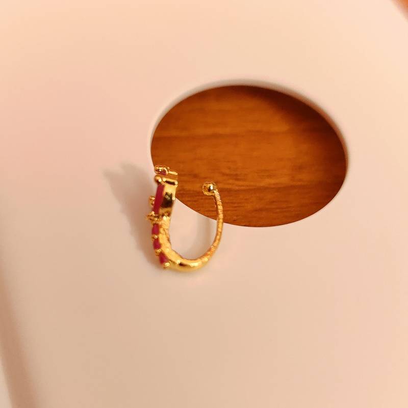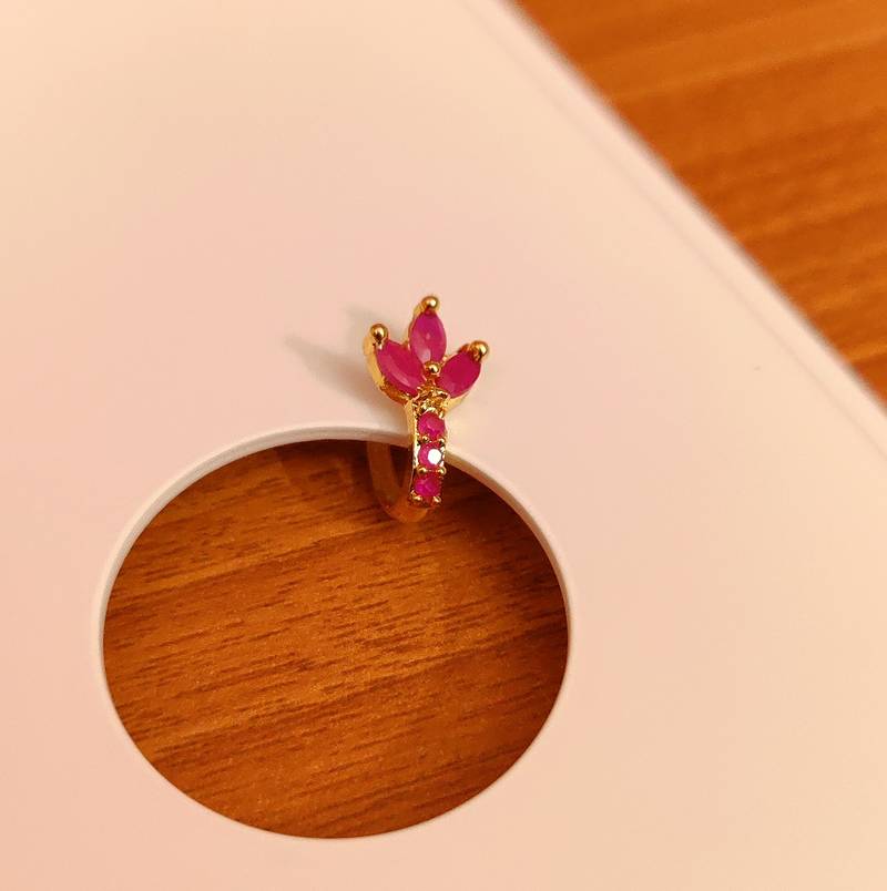 This Beautiful Nose Ring Is Handcrafted In Brass Alloy With Imitation Red Colour Stone Of Very Fine Quality . The Nose Ring Is Very Intricate And Very Light In Weight And Is Plated In 18kt Gold Plating As Done On The Real Gold Jewellery.
