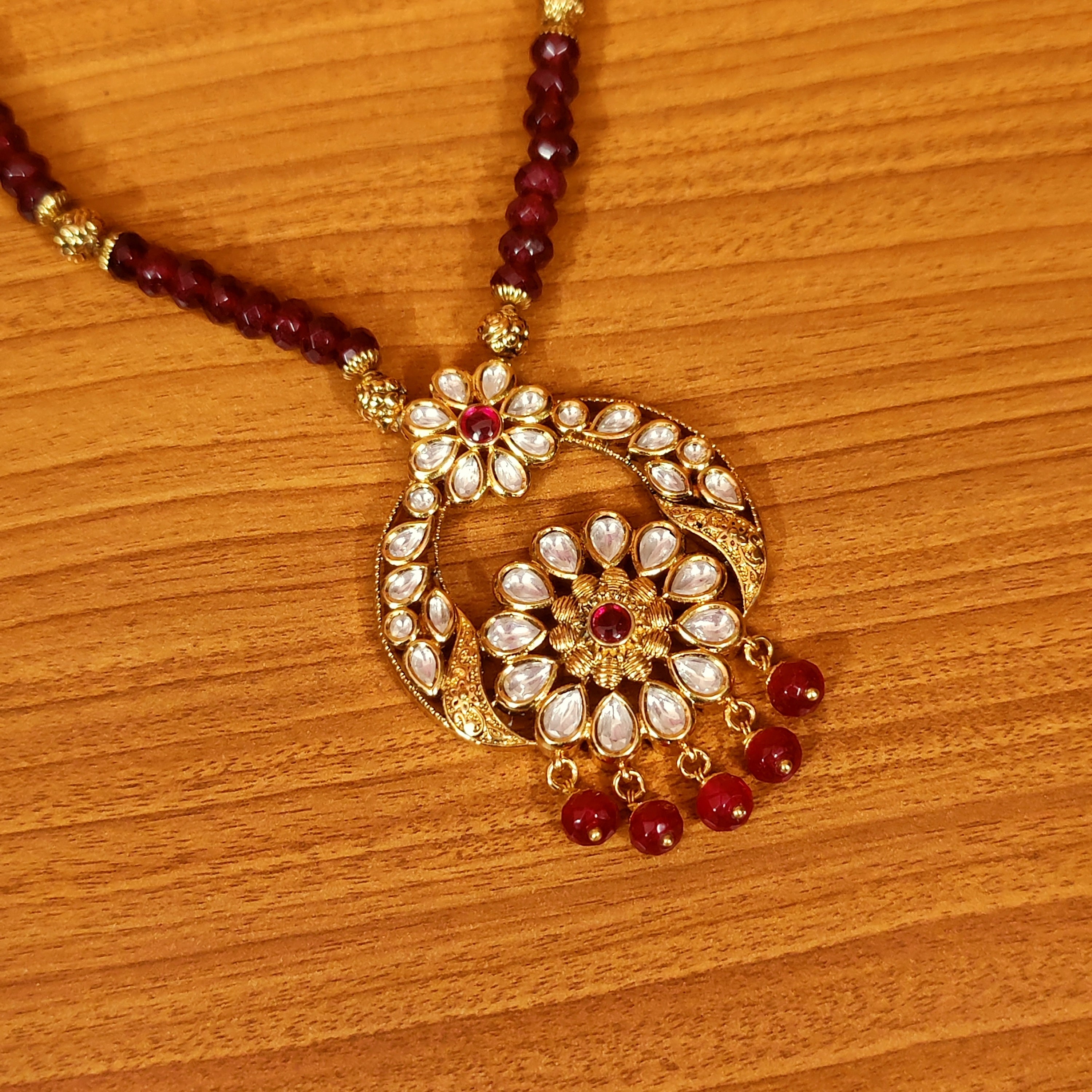 RUBY KUNDAN POLKI REAL GOLD LOOK PENDANT SET