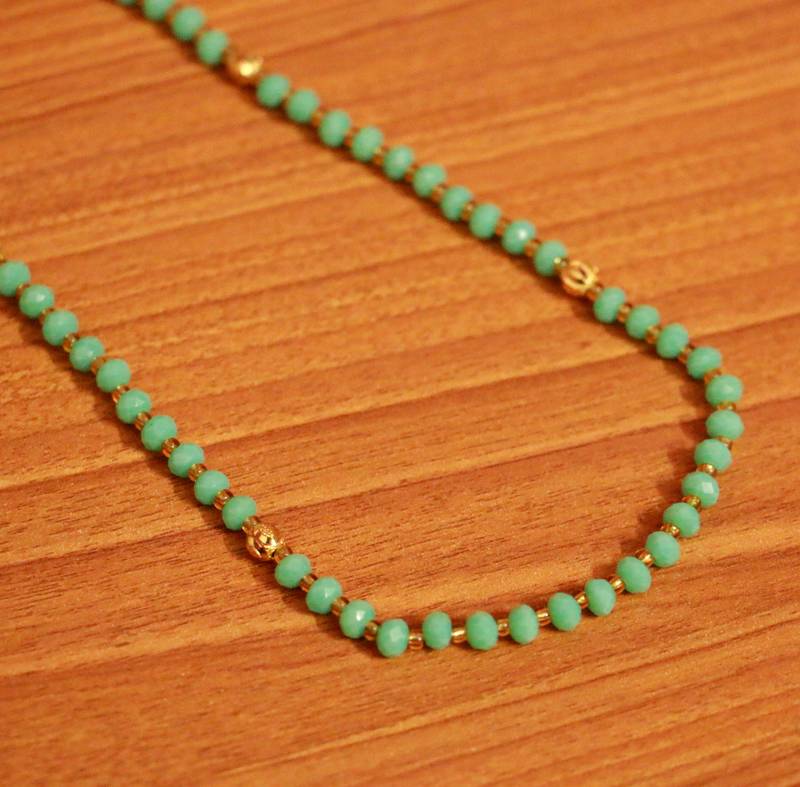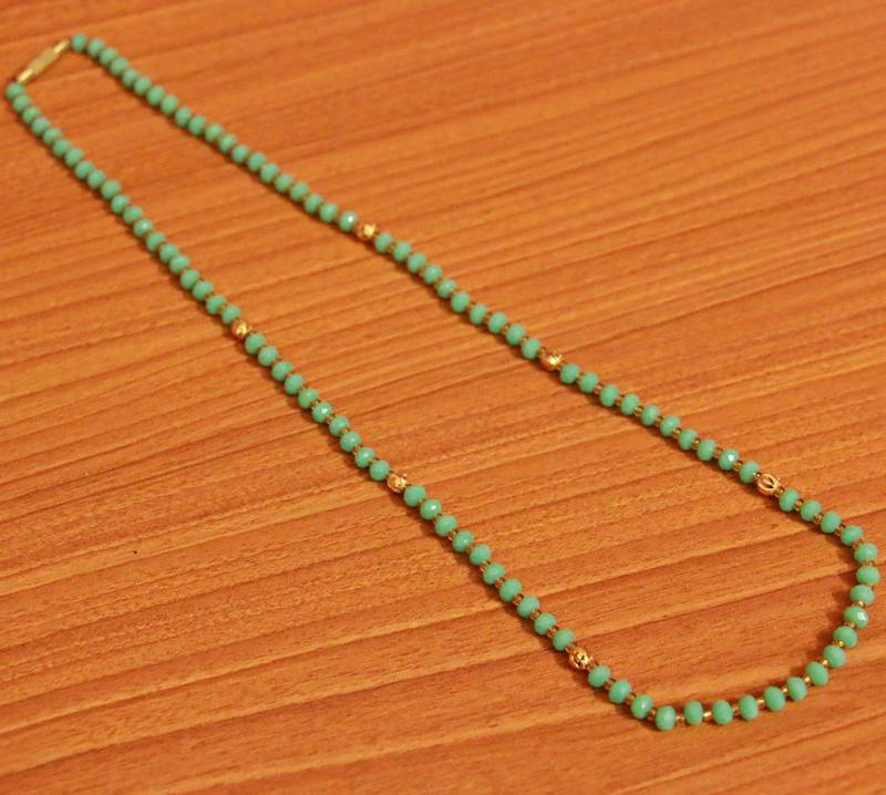 This Sea Green Crystal Beaded Necklace Is Handcrafted With Imitation Green Colour Crystal Beads And Gold Plated Beads Of Very Fine Quality . An Absolutely Stunning And A Classy Piece To Own And Are Very Light In Weight.