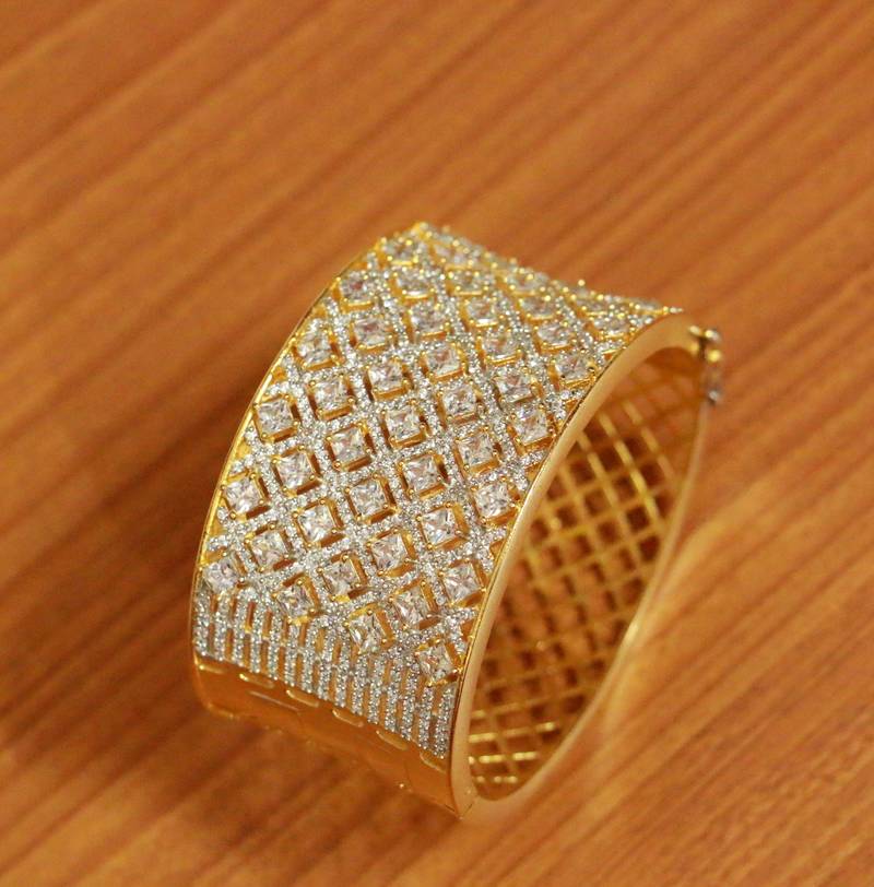 DIAMOND LOOK CZ STUDDED GOLD PLATED OPENABLE BRACELET