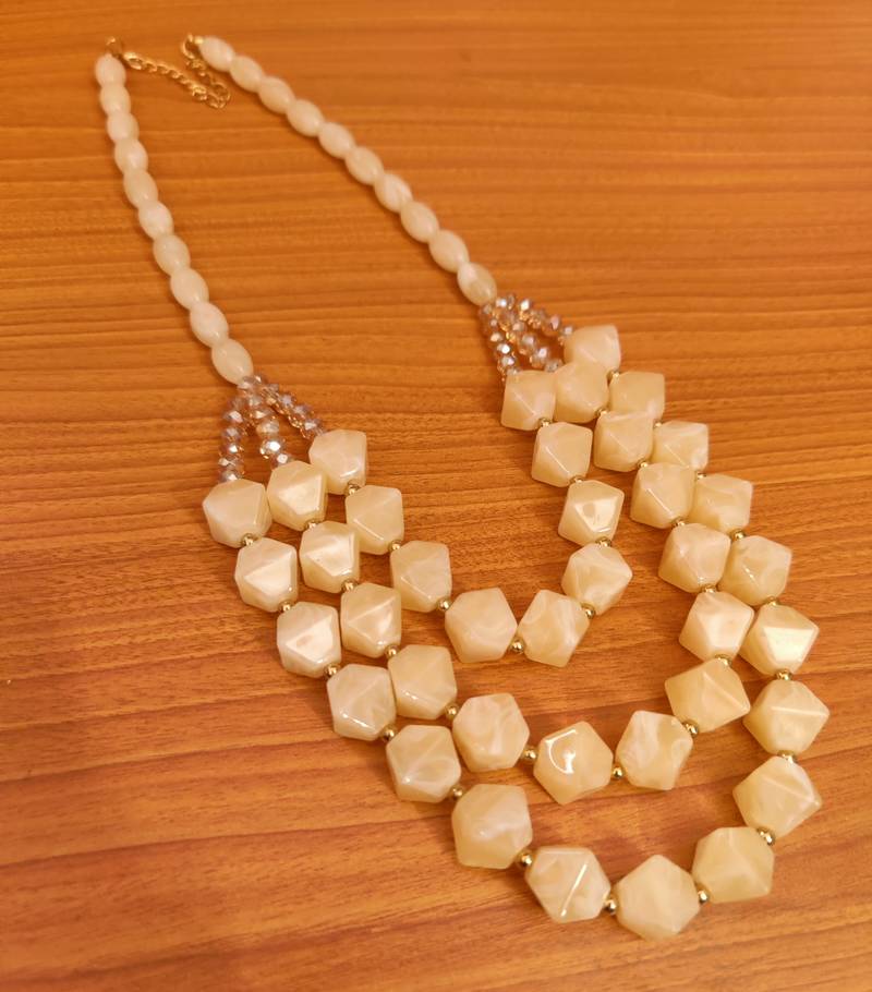 This Necklace Is Handcrafted In Brass Alloy With Beige Colour Crystal Beads , The Necklace Is Very Light In Weight And Is Perfect In Length. A Perfect Casual Wear For Outing .