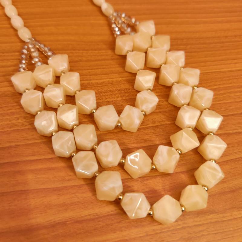 BEIGE CRYSTAL BEADED LAYERED NECKLACE