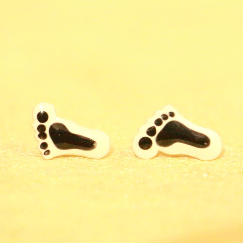 92.5 Sterling Silver Foot Steps Baby Earrings