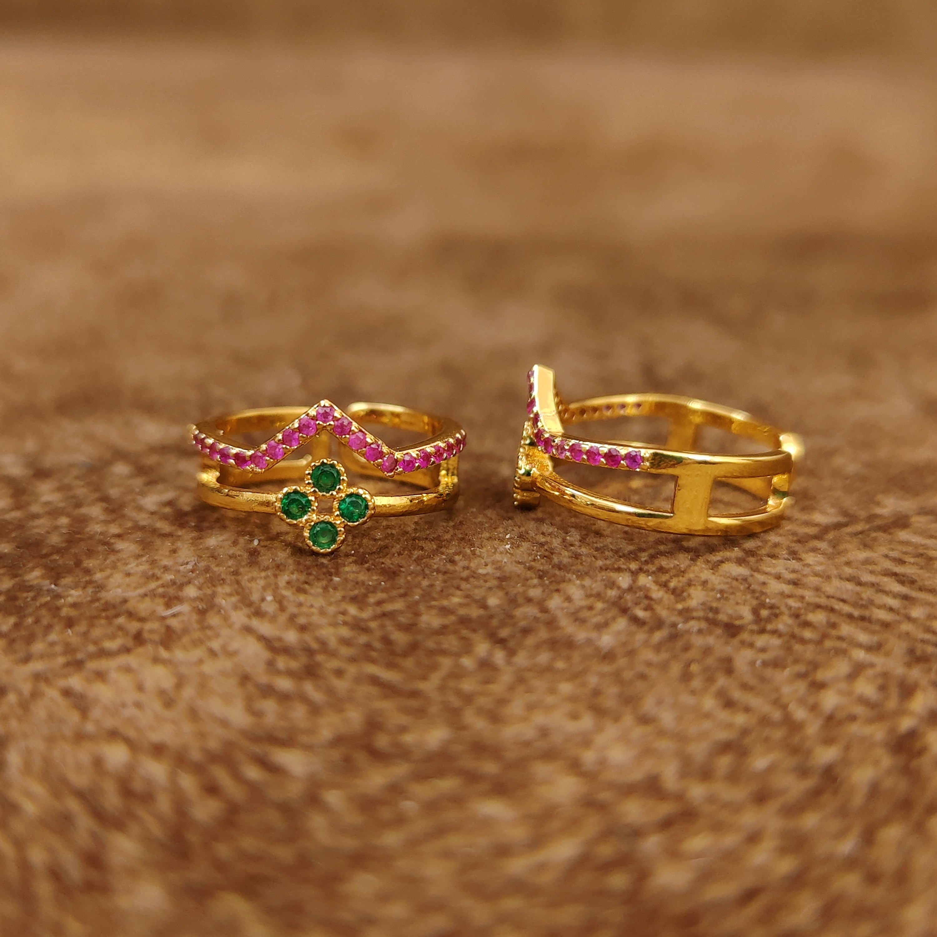 Add a touch of elegance to your feet with these Ruby & Emerald Gold Plated Toe Rings. Beautifully crafted with vibrant ruby and emerald stones, these toe rings feature an intricate gold-plated finish that enhances their luxurious appeal. Designed with an adjustable band for a comfortable fit, they are perfect for both traditional and contemporary outfits. Ideal for festive occasions, weddings, and daily wear, these toe rings are a timeless addition to your jewelry collection.
