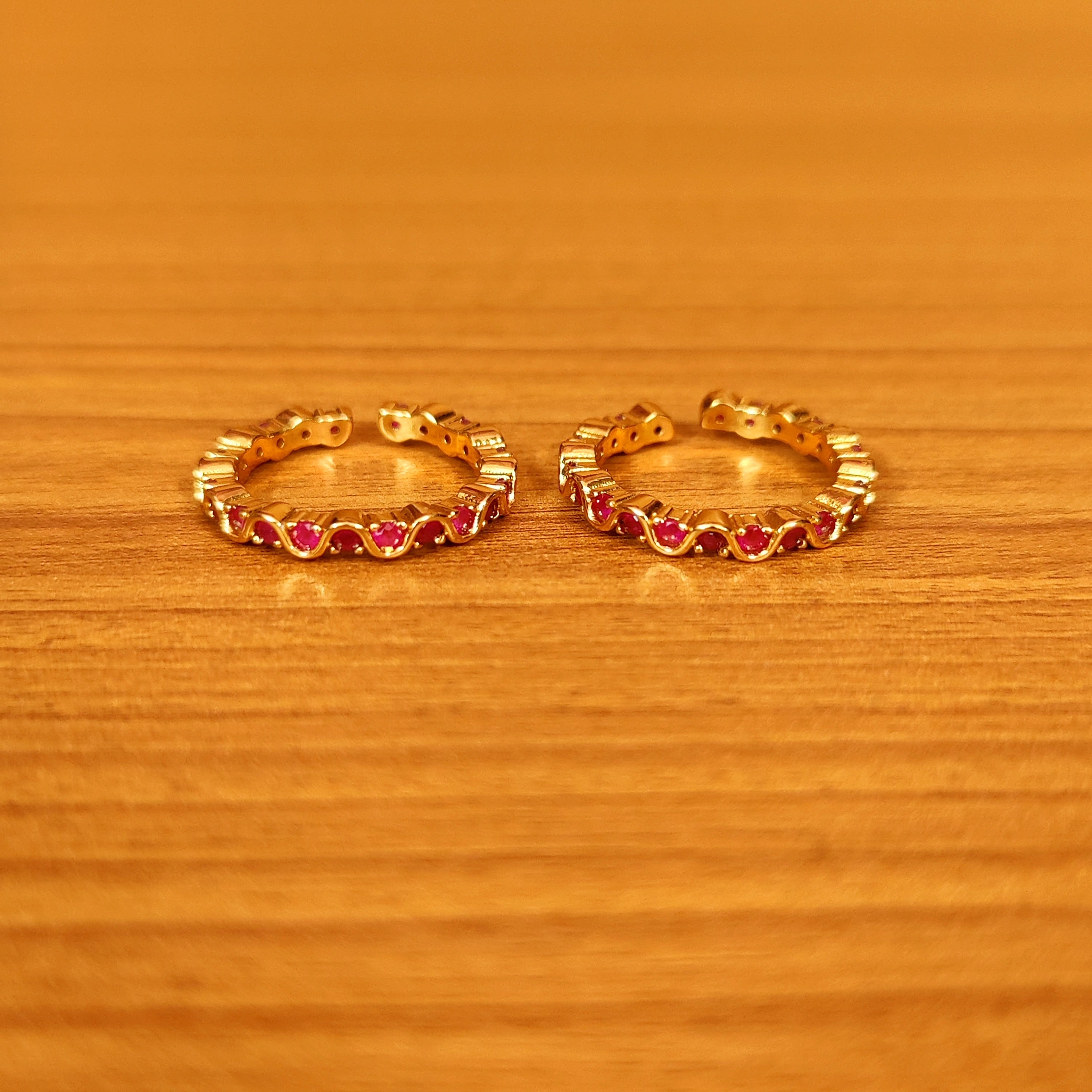 These gold look toe rings are made in silver and brass alloy with imitation ruby and emerald colour cz stones of very fine quality. These cute toe rings are handcrafted to perfection with high quality finish as seen in real diamond jewellery and are plated with 18kt nickle free gold rhodium that gives the design a real look.