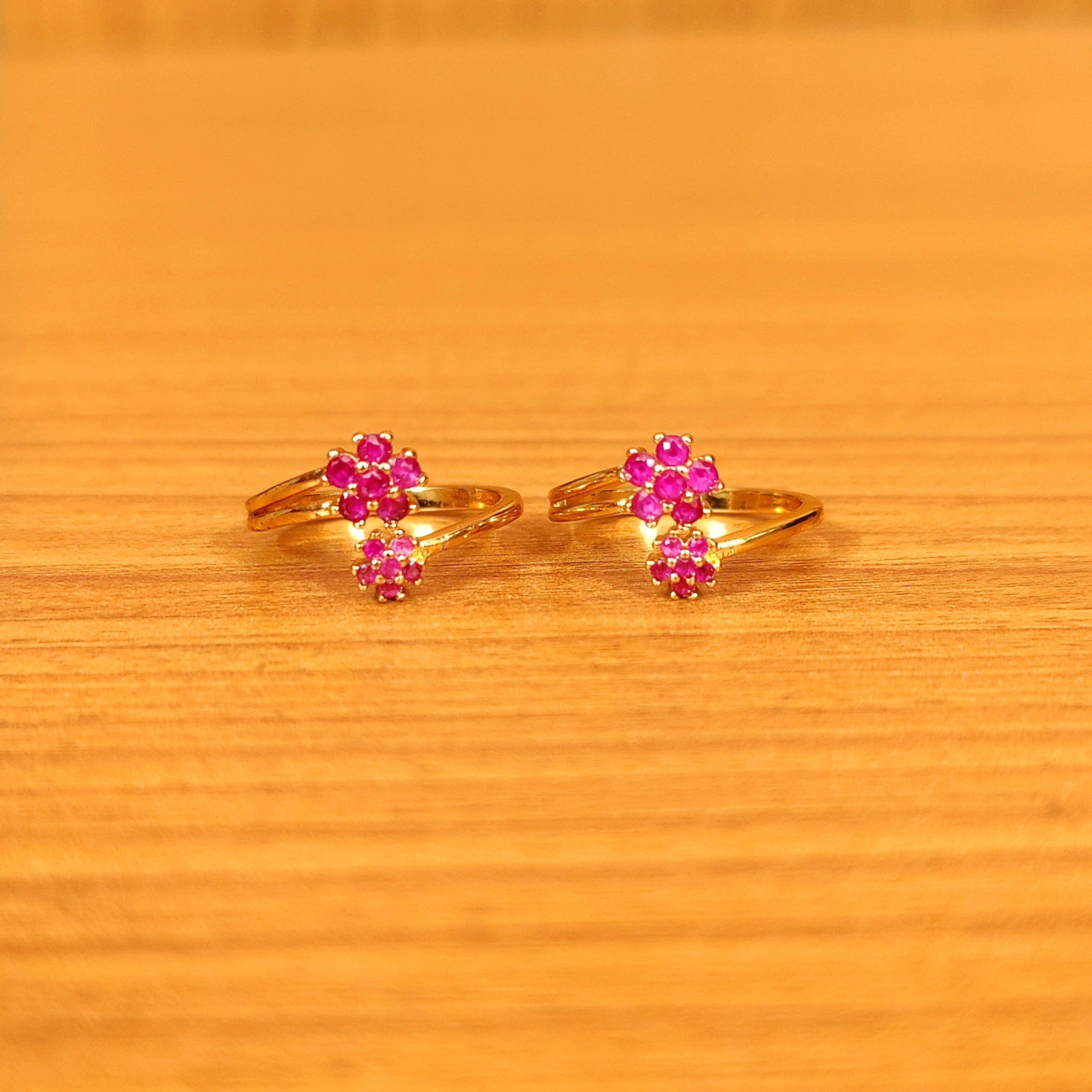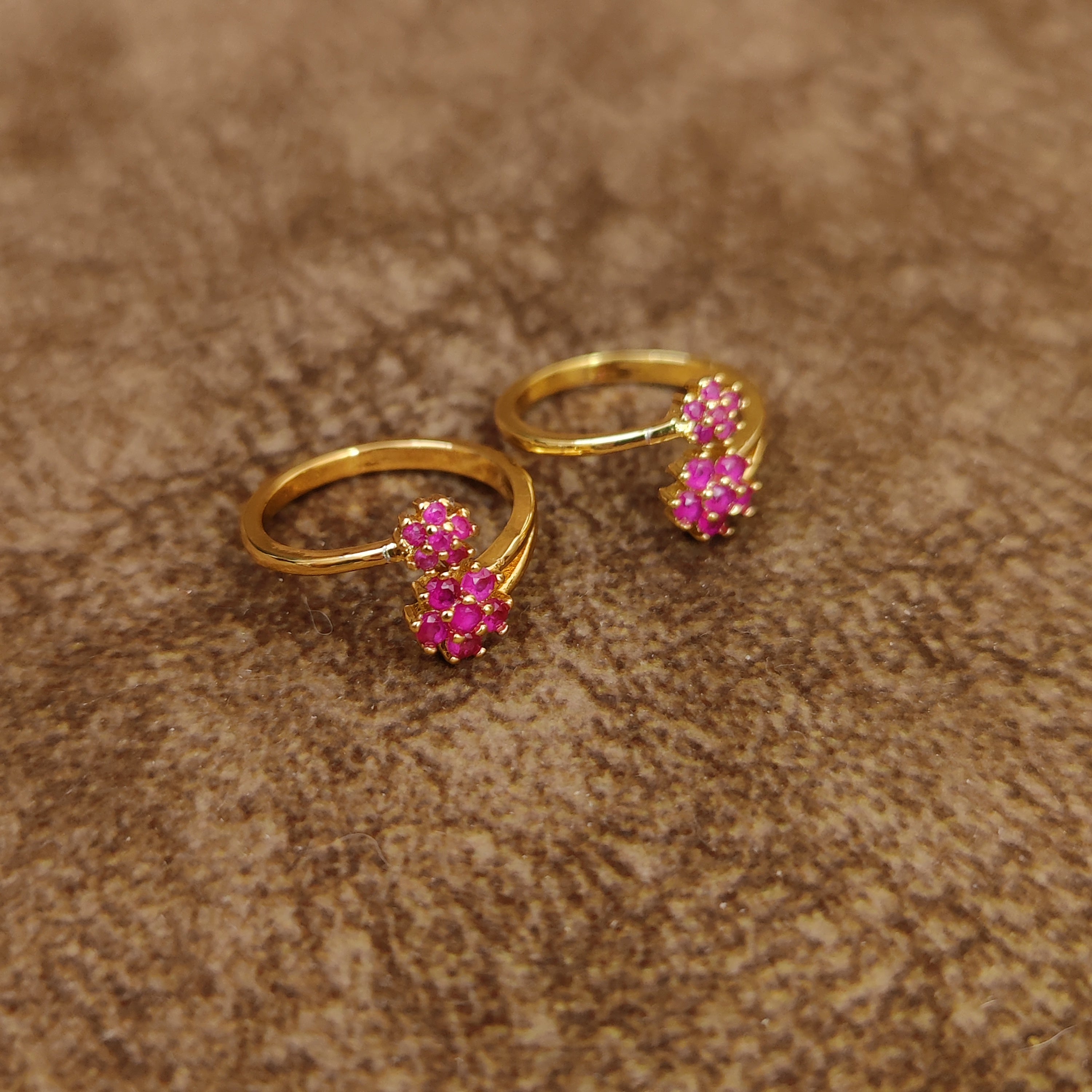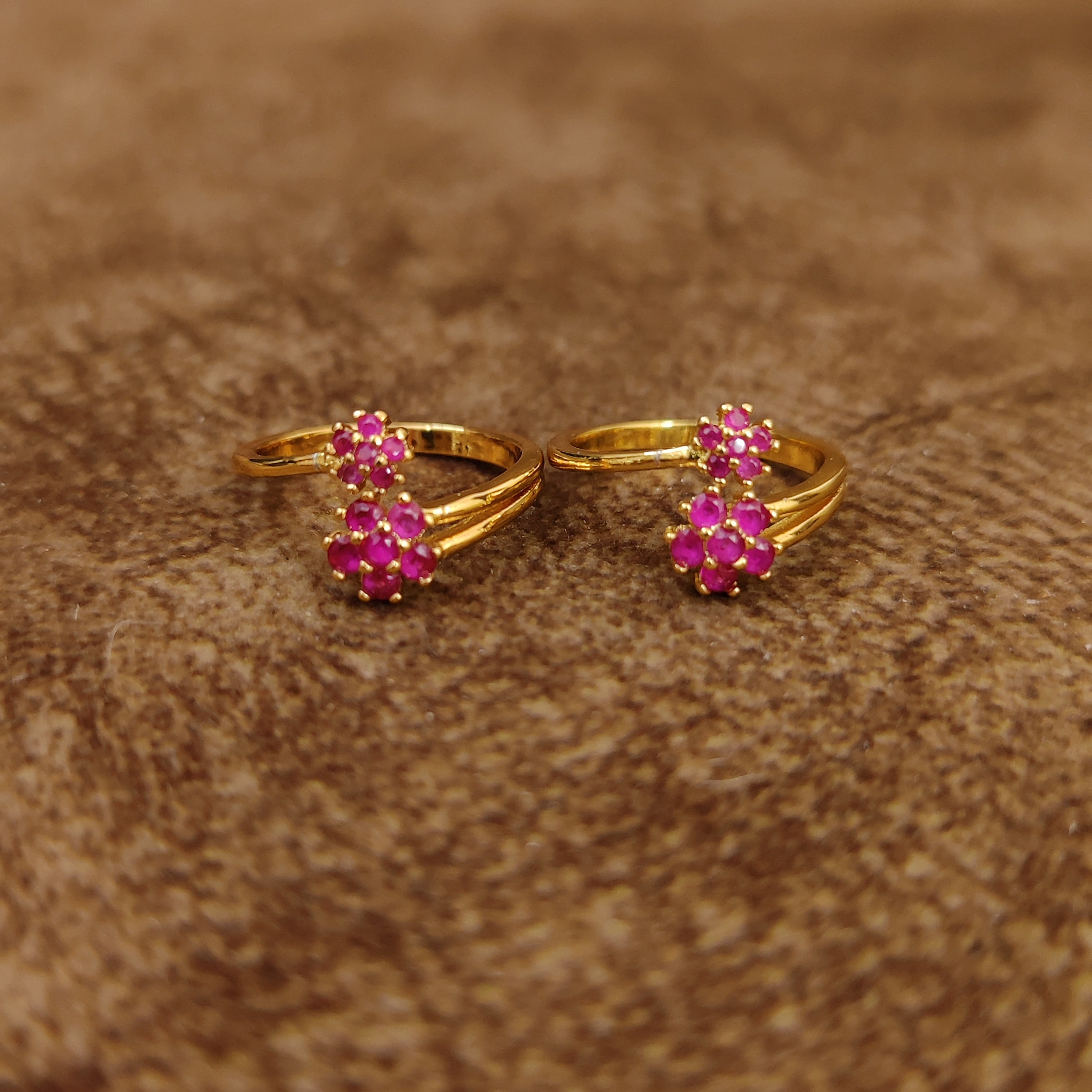 RUBY FLOWER PATTERN GOLD PLATED ADJUSTABLE TOE RING
