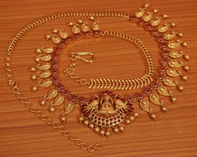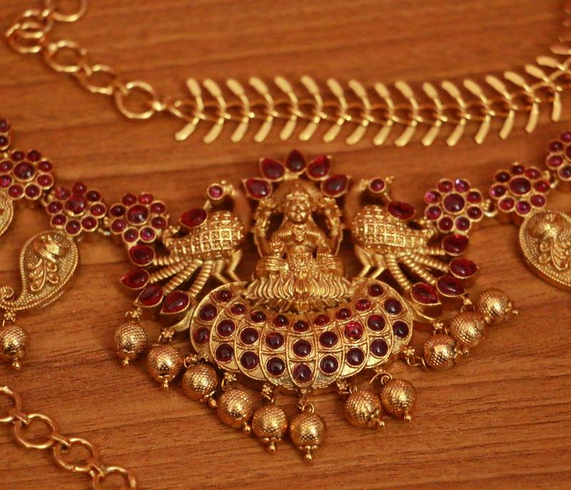 This Goddess Laxmi Pattern Waistbelt Is Handcrafted In Copper Alloy With Red Colour Stone & Gold Bead Polki Work Of Fine Quality , The Waistbelt Is Plated With 18kt Nickle Free Gold Plating Which Gives It A Real Look .