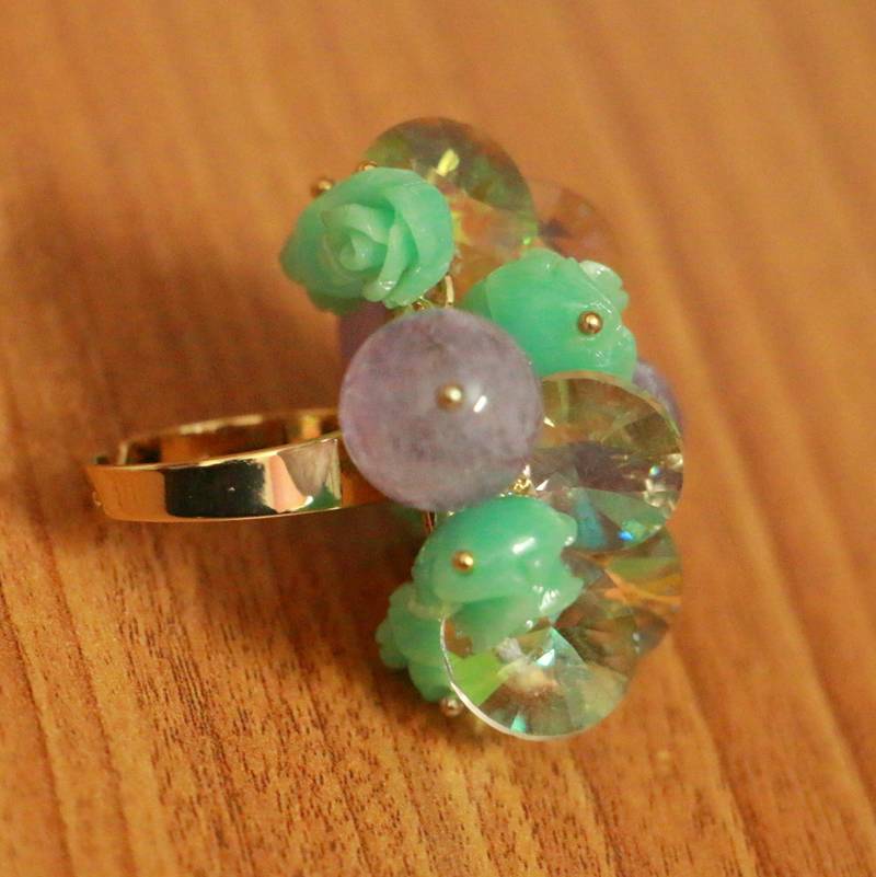 JADE GREEN & AMETHYST STONE ADJUSTABLE COCKTAIL RING