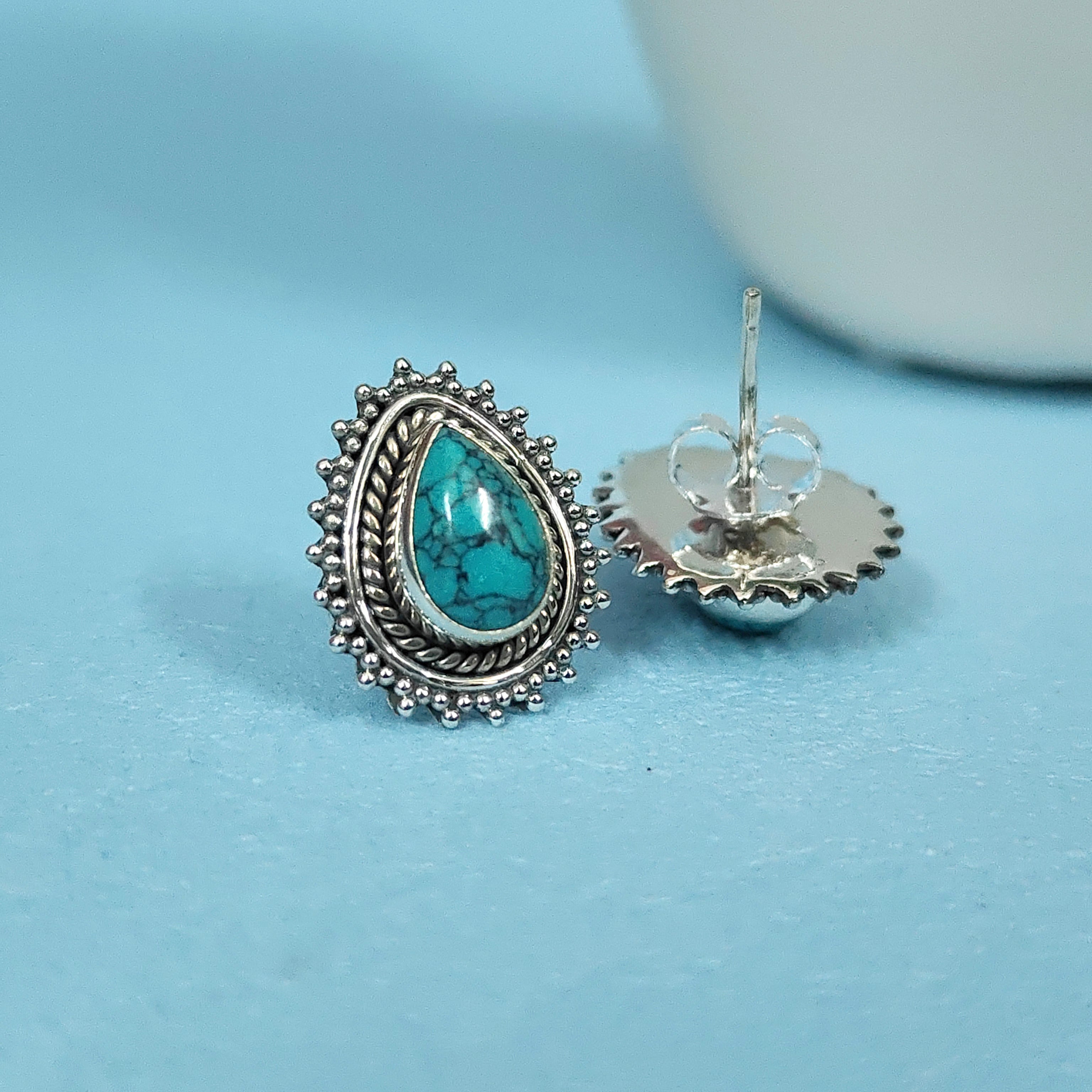 Elegant Teardrop Turquoise 92.5 Sterling Silver Stud Earrings for Women