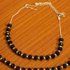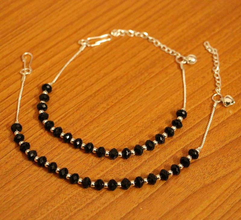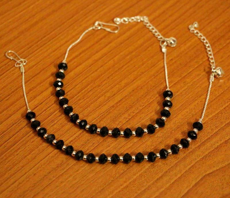 This Beautiful Anklets Is Handcrafted In Mettal Alloy With Imitation Black Beads And Silver Plated Work Of Very Fine Quality . This Anklets Is Coated With 18 Kt White Gold Polish Which Give Them A Unique Look . An Absolutely Stunning Piece To Own And Are Very Light In Weight.