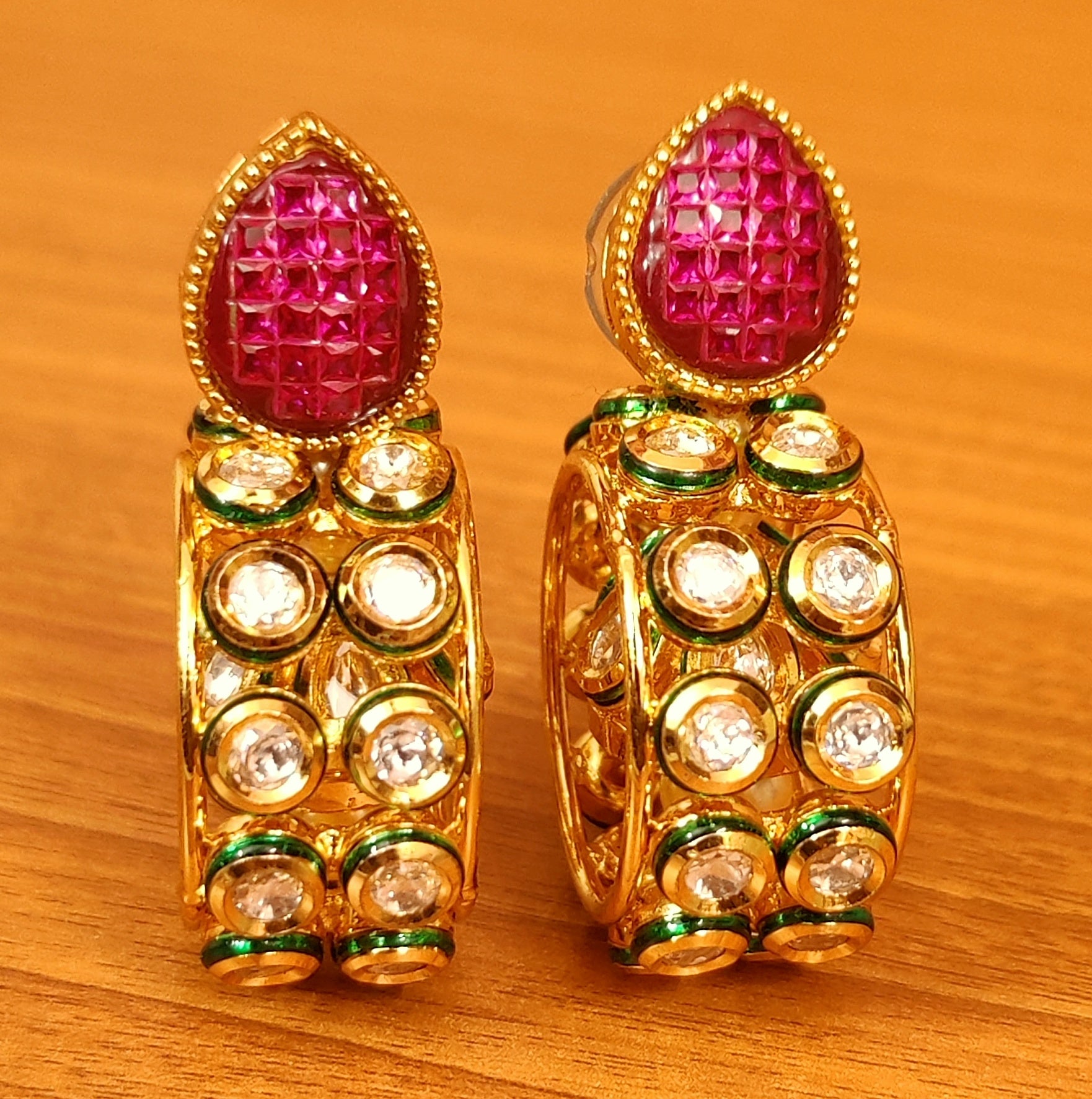 RUBY KUNDAN MEENAKARI GOLD PLATED STUDS