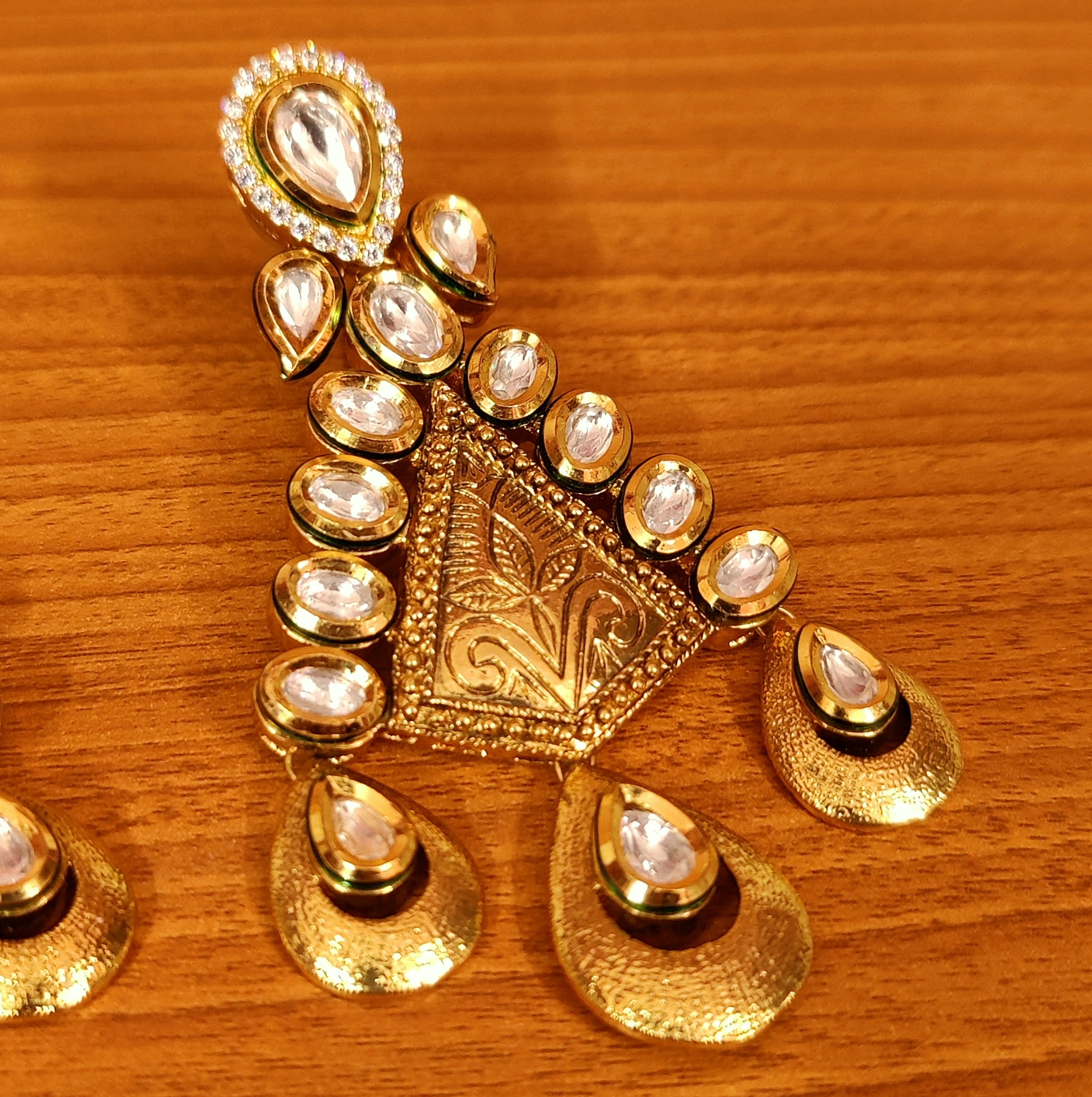 KUNDAN POLKI CZ STUDDED ANTIQUE DANGLERS