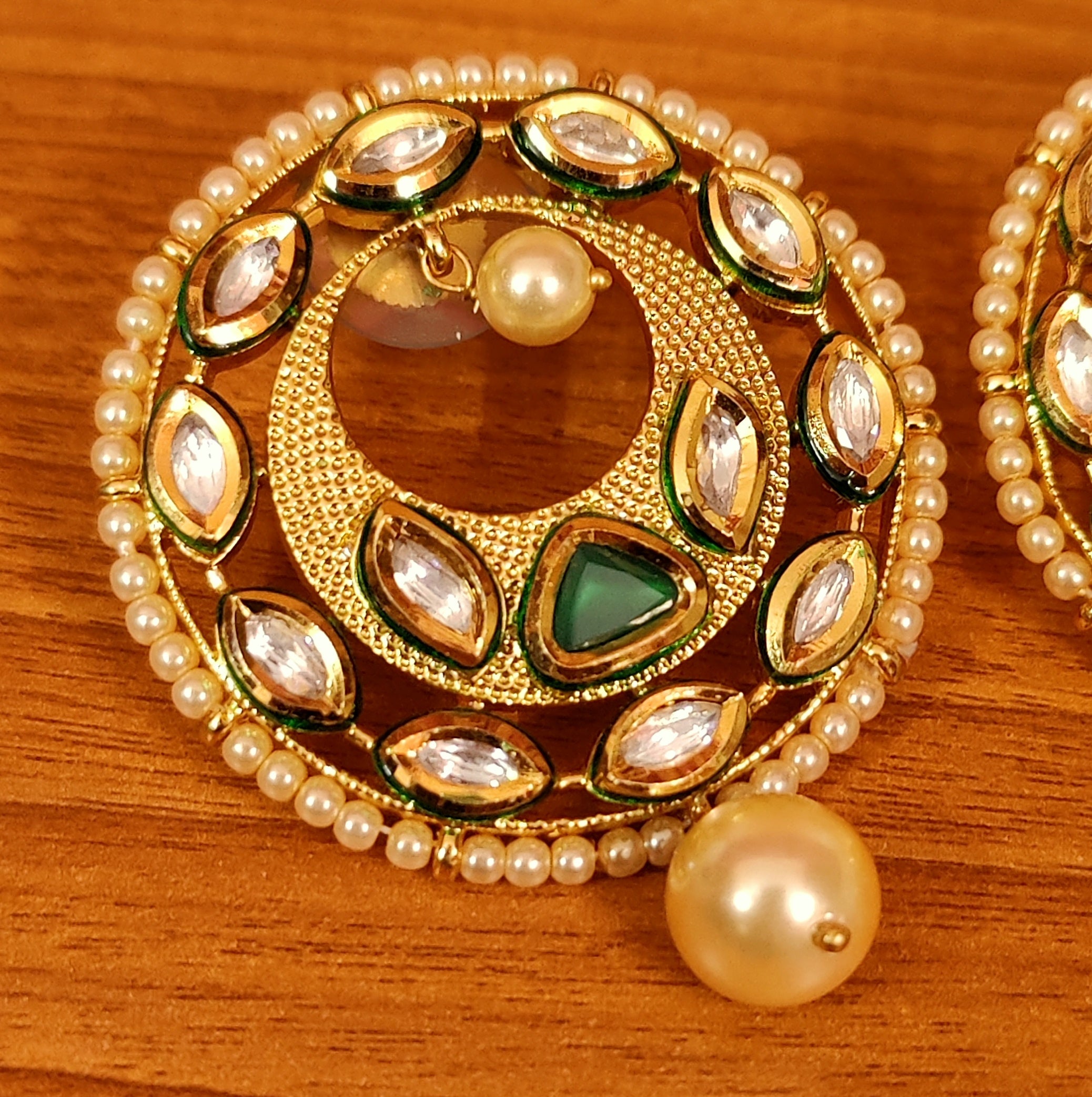 KUNDAN POLKI GOLD LOOK CHANDBALI EARRINGS
