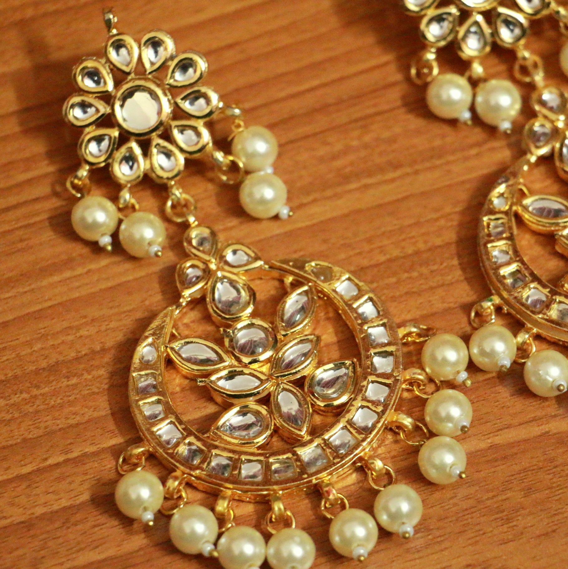 UNCUT KUNDAN POLKI PEARL CHANDBALI EARRINGS