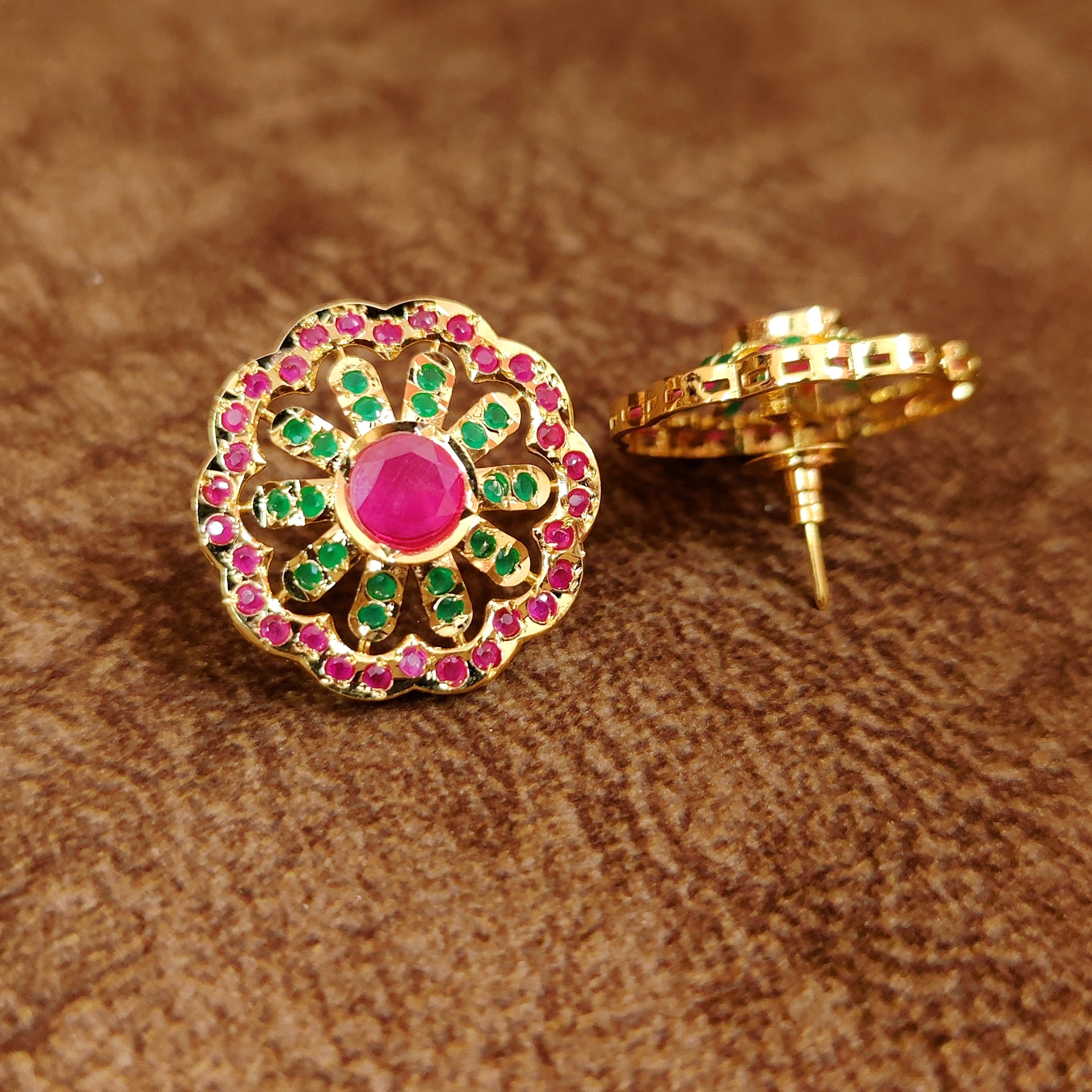 Emerald & Ruby Colour Stone studded Jadau Style Studs