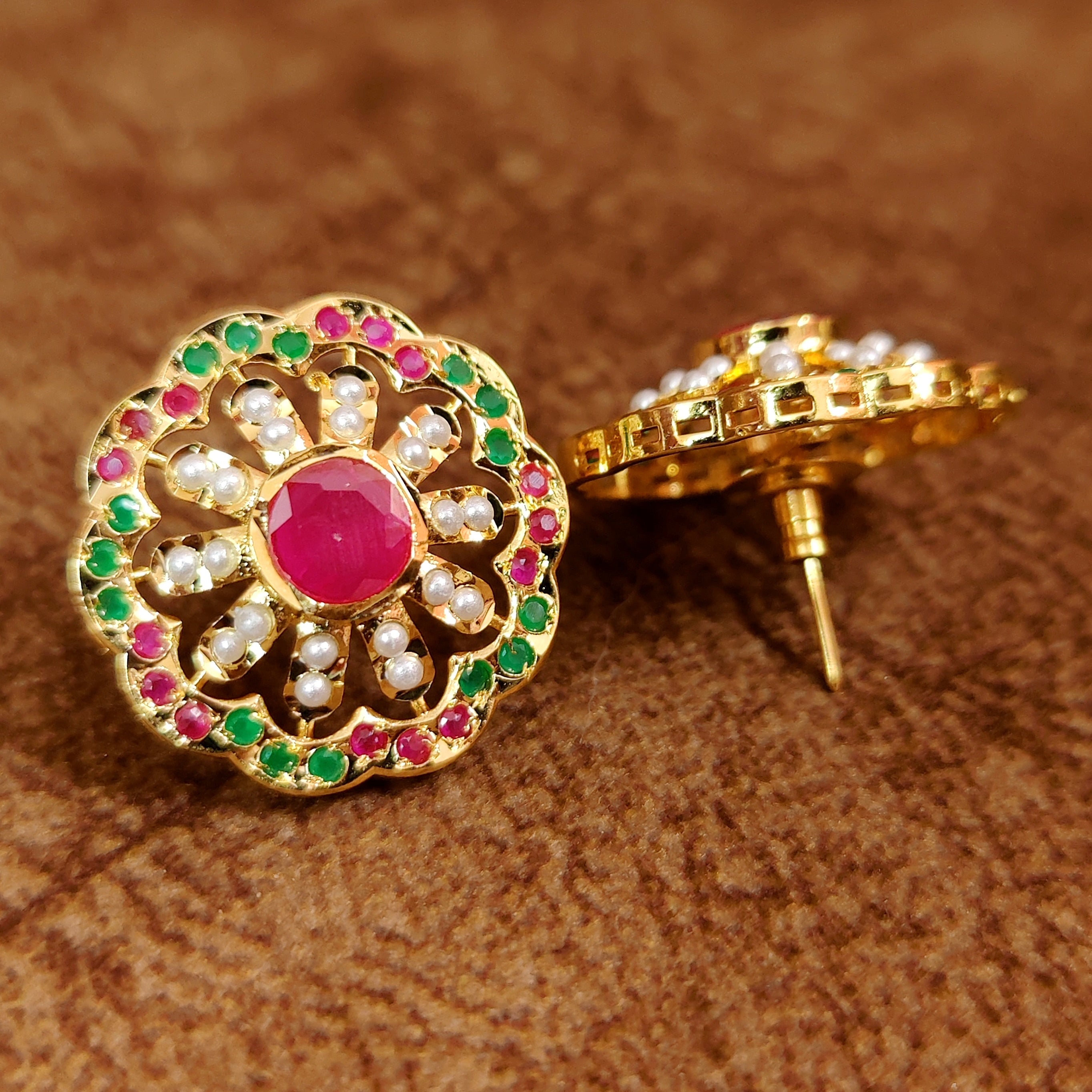 Pearl & Multi-Colour Stone Studded Jadau Style Studs