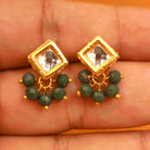 GREEN CRYSTAL SQUARE SHAPED KUNDAN STUDS