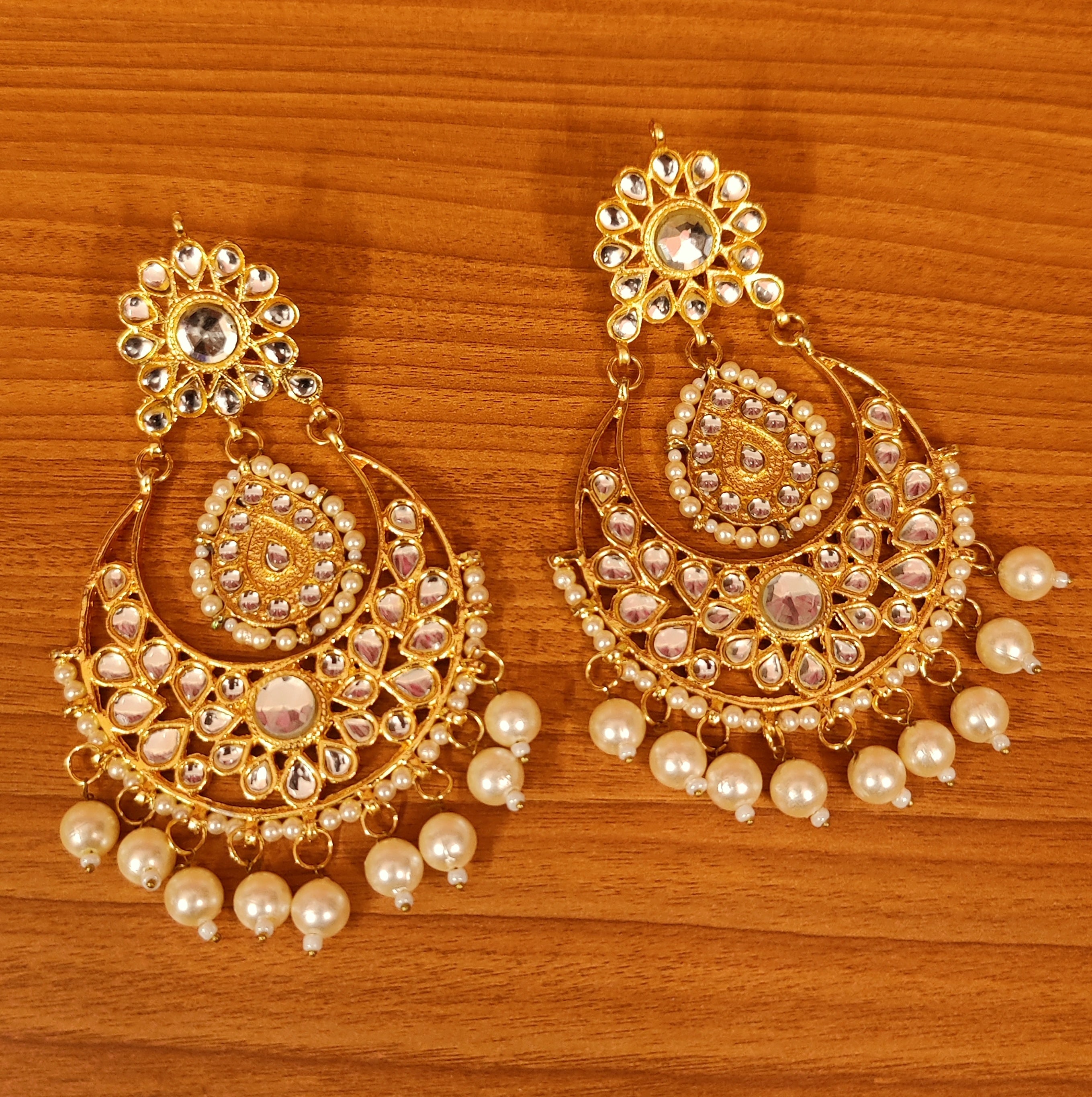 KUNDAN POLKI & PEARL GOLD LOOK CHAANDBALI