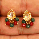 MULTICOLOUR CRYSTAL PEAR SHAPED KUNDAN MEENAKARI EARRINGS
