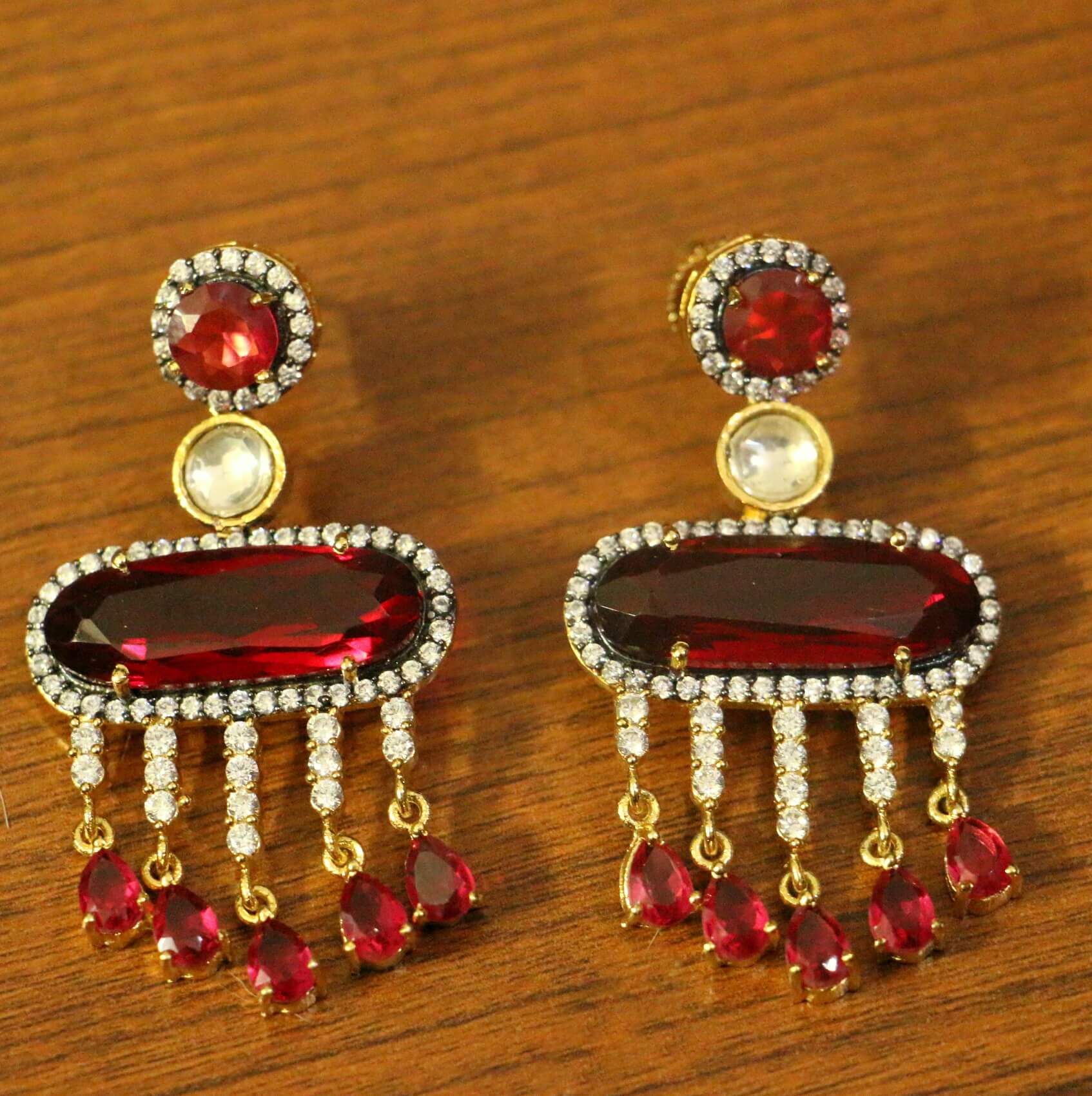 Red American Diamonds Ruby Yellow Gold Danglers Drops
