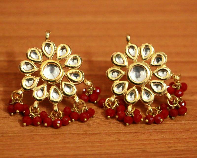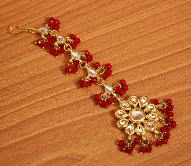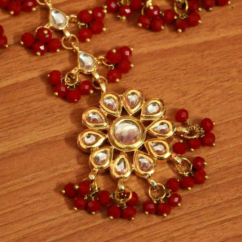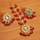 Red Crystal Kundan Meenakari Tikka With Earrings